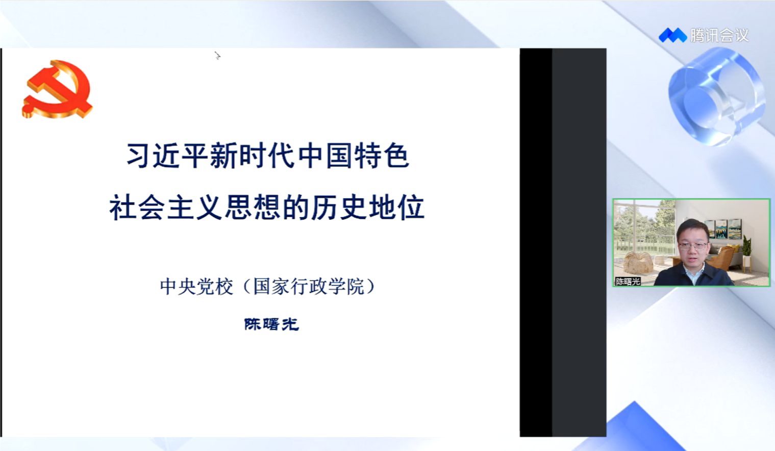 2023年4月22日下午,球王会体育官方网站邀请中共中央党校(国家行政学院)陈曙光教授走进球王会思政课课堂,作《习近平新时代中国特色社会主义思想的历史地位》专题报告。报告采取“腾讯会议+直播”的形式进行,球王会2021级和2022级本科生、校学生党校“求理”分部暨青年马克思主义研修班学员、马克思主义学院师生共同聆听报告。球王会体育官方网站党委书记高宁主持报告会。