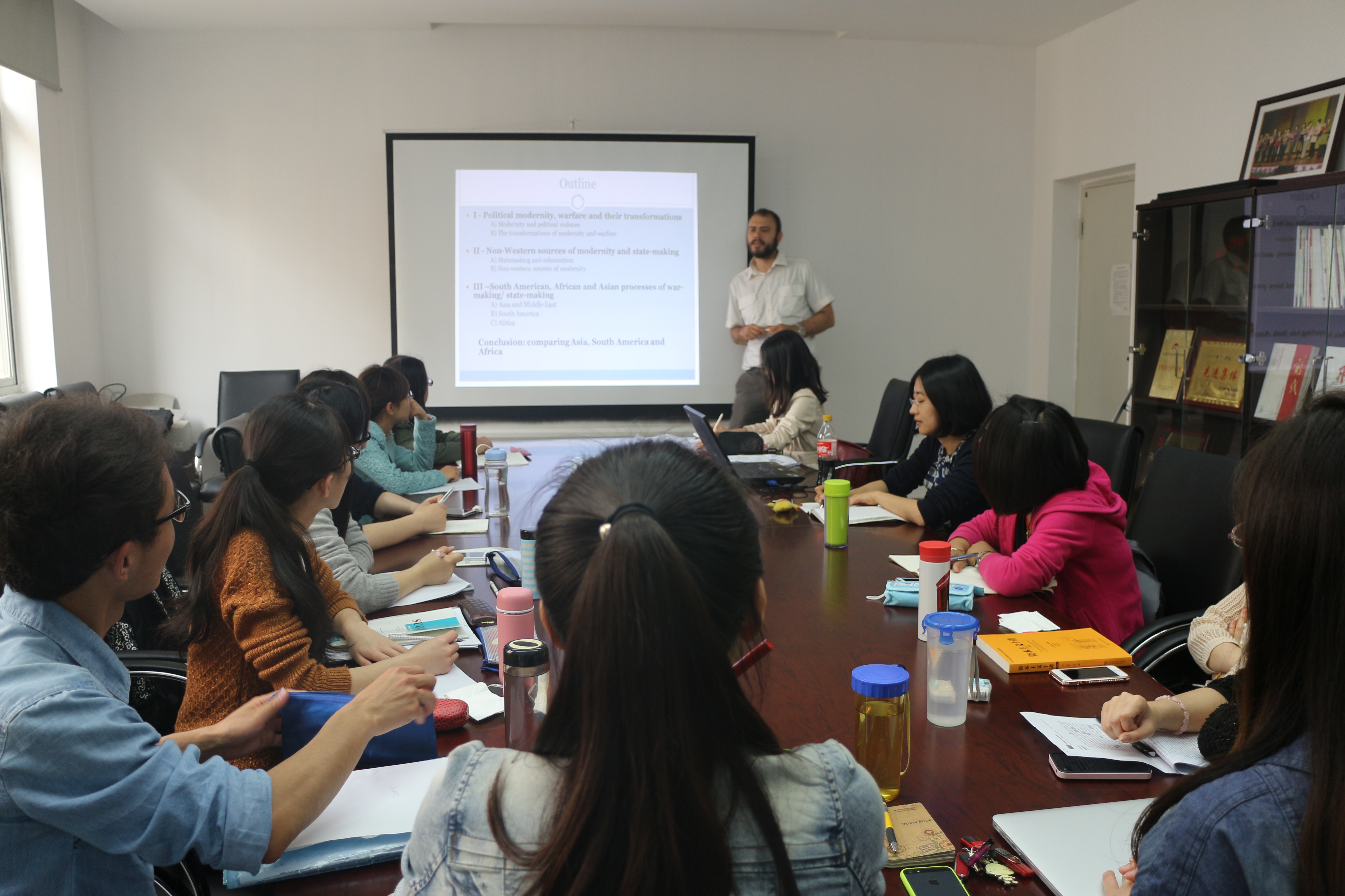 上课期间,Christian Olsson教授主要从历史社会学的角度,向球王会研究生讲授了国家政治理论,并向学生展示了西方学界的最新研究成果。围绕战争与现代国家的形成之间的历史性关联,他不仅细致地剖析了现代国家的概念,而且深入地分析了有组织的暴力行为如何推动现代国家的产生等问题。除此之外,通过比较不同地区的共性与差异,他试图超越欧洲中心主义的视角,鼓励学生对于现代国家进行批判性思考。
