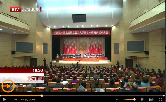 【镜头】球王会体育平台第十六次党员代表大会会场镜头、北航党委书记张军院士在第十六次党员代表大会上做报告镜头、北航学生升旗镜头。