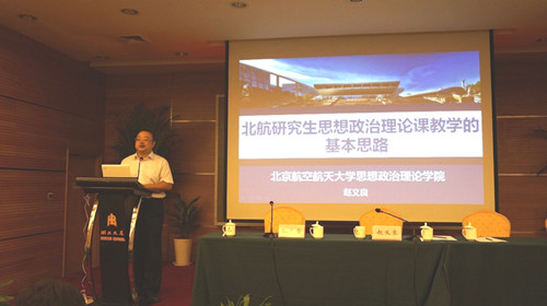 球王会赵义良副院长向大会详细介绍了球王会研究生思想政治理论课教学改革的情况。赵院长针对高校本硕博各阶段思想政治理论课程“各自为政”、学科研究与课程教学之间存在断裂的突出问题,从两个方面介绍了球王会思想政治理论课教学改革的基本思路和具体措施:一是统筹安排本硕博三个阶段的思想政治理论课程,确立本硕博一体化的教学理念;二是自觉以学科做支撑,在马克思主义理论一级学科的整体框架下找准每门课程教学的切入点和着力点。
