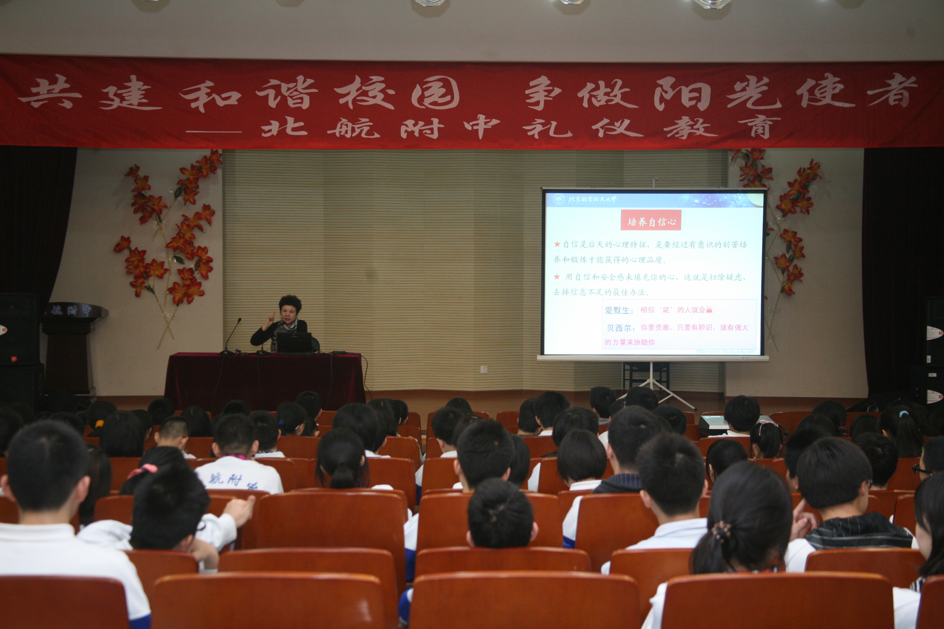 3月14日,在北航附中文明礼仪教育活动月之际,球王会姚小玲教授应邀来到附中,为同学们带来了一堂题为“演讲与口才”的礼仪教育课程。