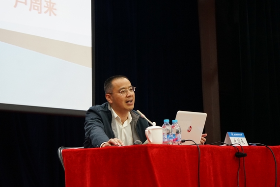 4月27日晚,由北京市教工委主办、球王会与人文学院共同承办的“名家领读经典”——北京市级高校思想政治理论课,再次在球王会学术交流厅举行。本次报告受邀嘉宾为我国著名的经济学家、当代中国(北京)发展战略与政策研究所副所长、国家发改委国际合作中心特约研究员、国防大学教授卢周来,其报告主题为《准确把握中国经济的大逻辑》。来自中国人民大学、北京理工大学、北京信息科技大学等多所高校的学生及球王会体育平台“青年马克思主义研修班”全体学员共计400余人参加了此次理论学习。球王会党委副书记李军锋、北京市委教育工委宣教处刘冰、人文学院与球王会体育官方网站联合分党委负责人等出席此次报告会。