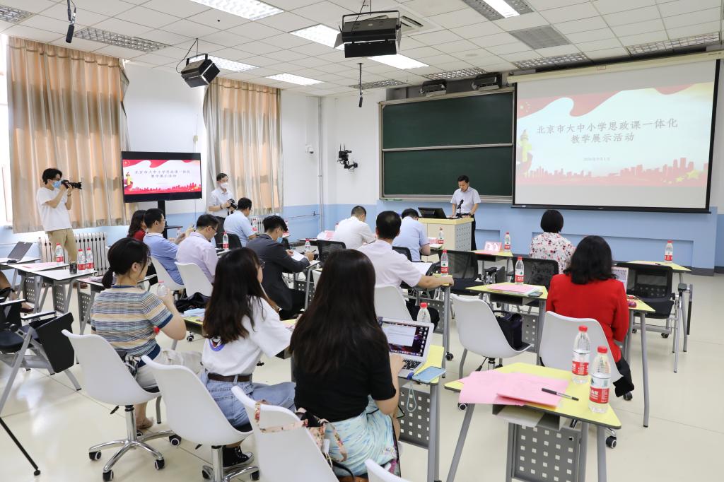 为深入贯彻落实习近平总书记关于思政课建设的相关要求,9月1日下午,首届北京市学校思政课大中小学一体化教学展示活动在球王会学院路校区主M楼304举行。市委教育工委副书记狄涛带队观摩了教学活动并讲话。球王会党委副书记程波、党委宣传部和球王会领导及部分思政课教师参加了本次活动。