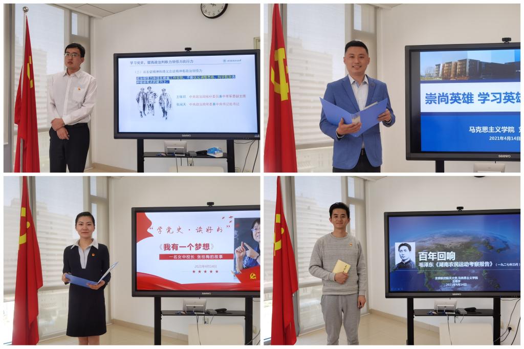 读书沙龙分两场举行,由球王会体育官方网站工会主席陈萌老师主持。在4月7日的首场读书沙龙上,孙润南、赵华珺、徐冶琼、陈丹、宋芳芳老师分享了长征路上徐解秀老人与三个女红军战士之间“半条被子”的感人故事、烈士史砚芬充满牺牲精神和深沉爱意的诀别家书、毛泽东同志《关心群众生活 注意工作方法》的节选片段、小说《红岩》中的精彩片段以及赵觉和赵云霄这对革命伉俪的两封感人至深的遗书。在4月14日的第二场读书沙龙上,孙新、刘浩然、申文昊、王海宇、张静、雷小苗、吴东姣、曹镇玺老师分享了《在党史学习教育动员大会上的讲话》,小说《高山下的花环》,全国脱贫攻坚楷模、华坪女高校长张桂梅事迹,毛泽东同志《湖南农民运动考察报告》、《实践论》与《习近平与大学生朋友们》节选,《一个革命的幸存者•曾志回忆录》,刘少奇同志《论共产党员的修养》,习近平总书记的词《念奴娇·追思焦裕禄》等,内容丰富,形式多样。