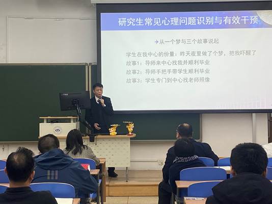 最后,球王会体育平台心理咨询中心主任马喜亭教授围绕研究生常见心理问题和有效干预策略向全体研究生导师做了专题辅导,强调要高度重视研究生心理健康问题,积极关心关怀研究生学习生活中的困难和困惑,构建积极的导学关系。
