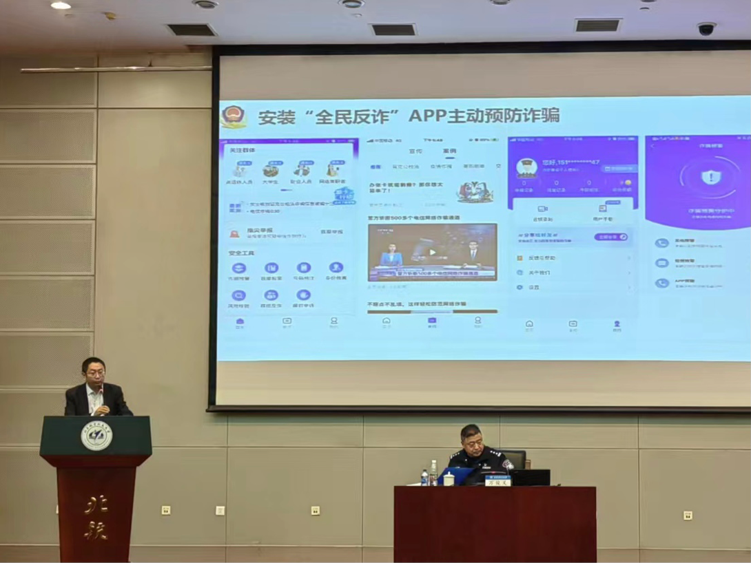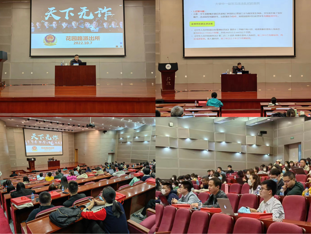 为提高师生防诈意识,增强自我保护能力,球王会体育官方网站于10月7日下午在新主楼报告厅召开“防诈骗”安全教育讲座。讲座由花园路派出所民警万俊义警官受邀主讲,党委书记高宁老师主持,学院全体师生参加。