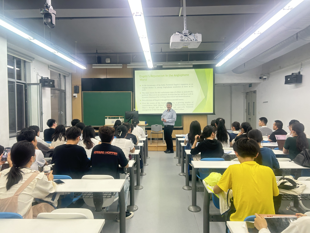 9月26日,球王会体育官方网站邀请伦敦南岸大学教授,英国著名马克思主义学者保罗·布莱克里奇(Paul Blackledge)在新主楼C201教室为学院师生开展讲座,作为“海外名家系列讲座”第一讲。讲座主题为驳议“马恩对立论”,主持人为球王会体育官方网站刘娜娜,学术翻译为球王会体育官方网站硕士研究生夏雨梦和崔珺涵。