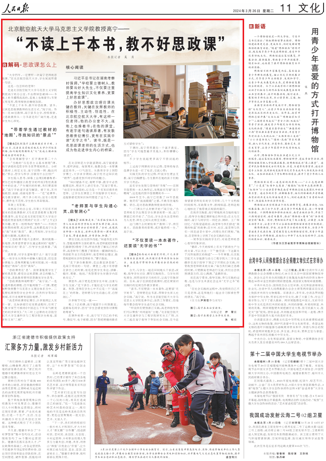 《人民日报》2024年3月26日“解码·思政课怎么上”栏目(记者 吴 月)报道球王会体育平台球王会体育官方网站教授高宁: