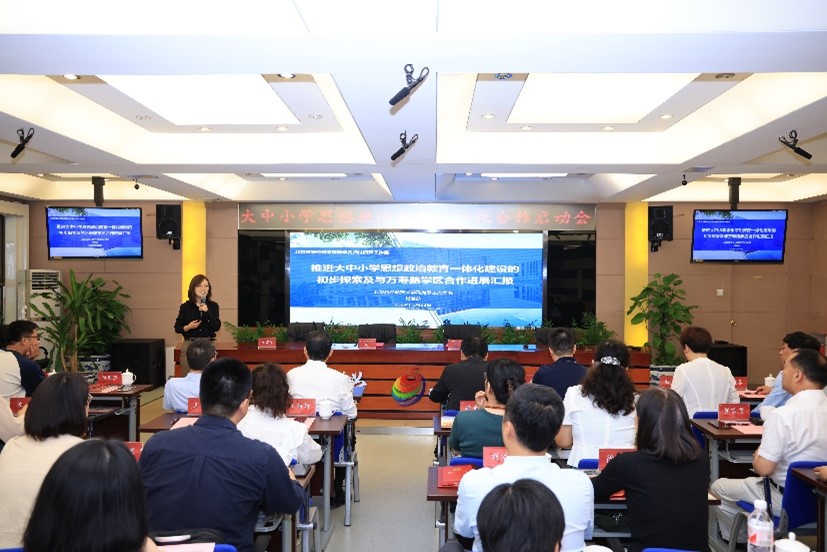 近日,球王会体育平台球王会体育官方网站与海淀区万寿路学区管理中心联合组织召开推动大中小学思想政治教育一体化合作启动会,旨在探索思政教育的创新路径,提升教育质量和水平,统筹推进大中小学思想政治教育一体化建设。海淀区关工委副主任乔键、万寿路街道党工委书记曾涛、永定路街道党工委书记付海涛、万寿路学区管理中心党总支书记程莉,球王会球王会体育官方网站党委书记高宁、北京市学校思政课青年教学名师工作室负责人付丽莎及工作室成员、区域内各中小学书记、校长等60余人参加会议。