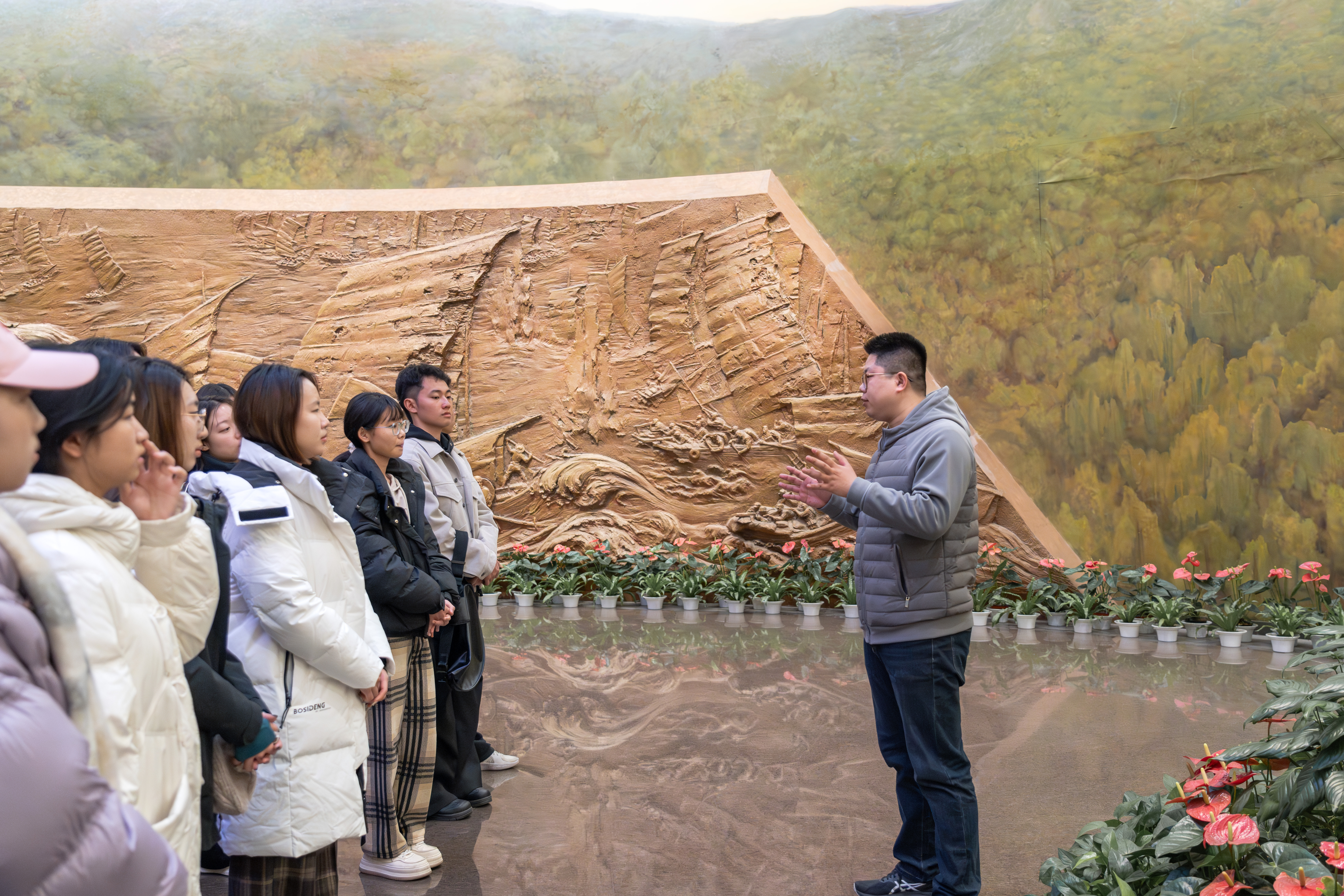 师生认真聆听讲解员介绍