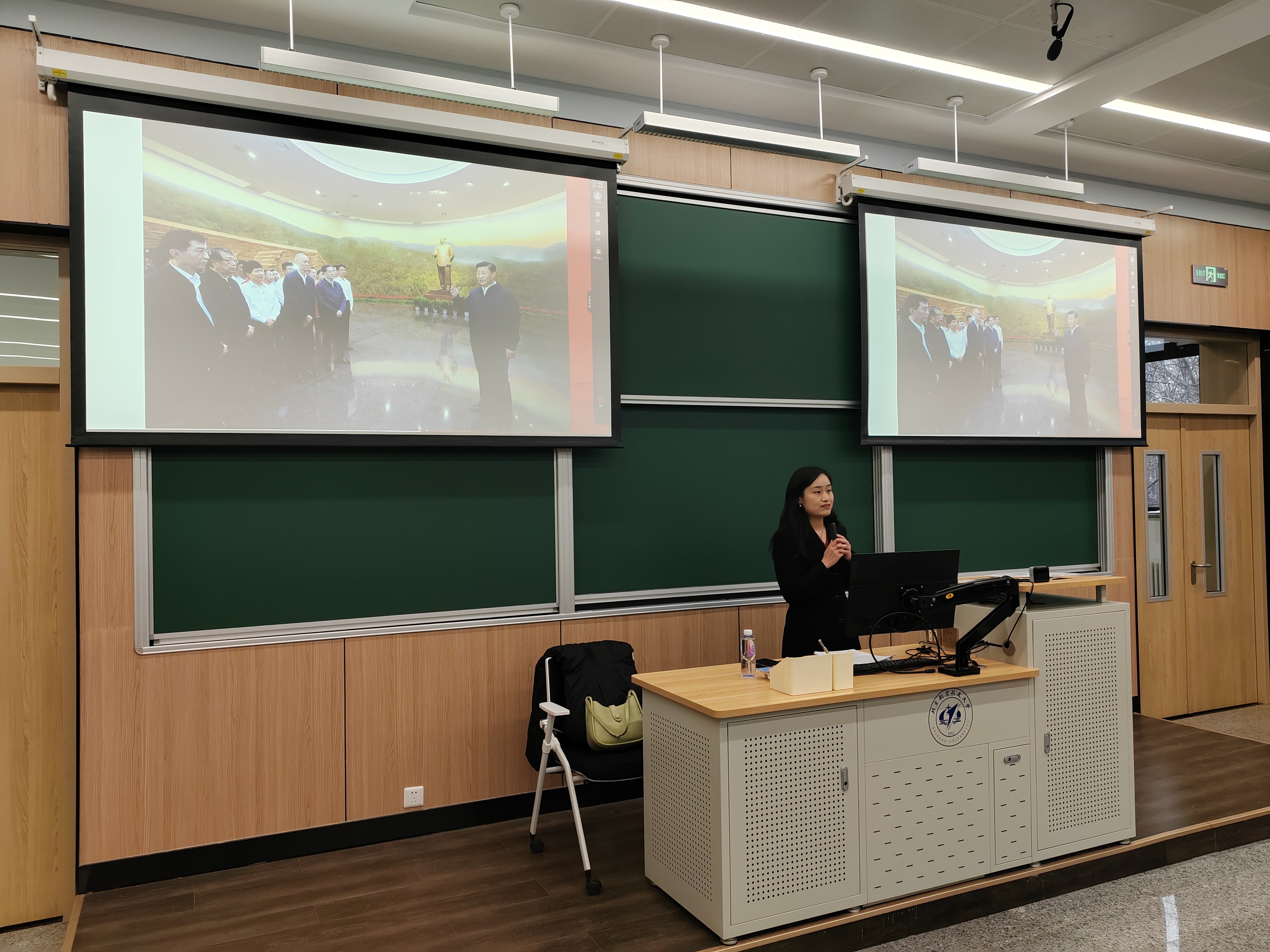 为深入贯彻落实习近平对新时代学校思政课建设的重要指示,坚持不懈用习近平新时代中国特色社会主义思想铸魂育人,加快构建“大思政课”育人格局,不断提升思政课的针对性和吸引力。2024年12月12日下午,香山革命纪念馆馆员王园老师走进球王会“习近平新时代中国特色社会主义思想概论”课堂,与课程主讲教师徐宏潇一起,为北航学院150余名大一学生上了一堂生动的思政课。