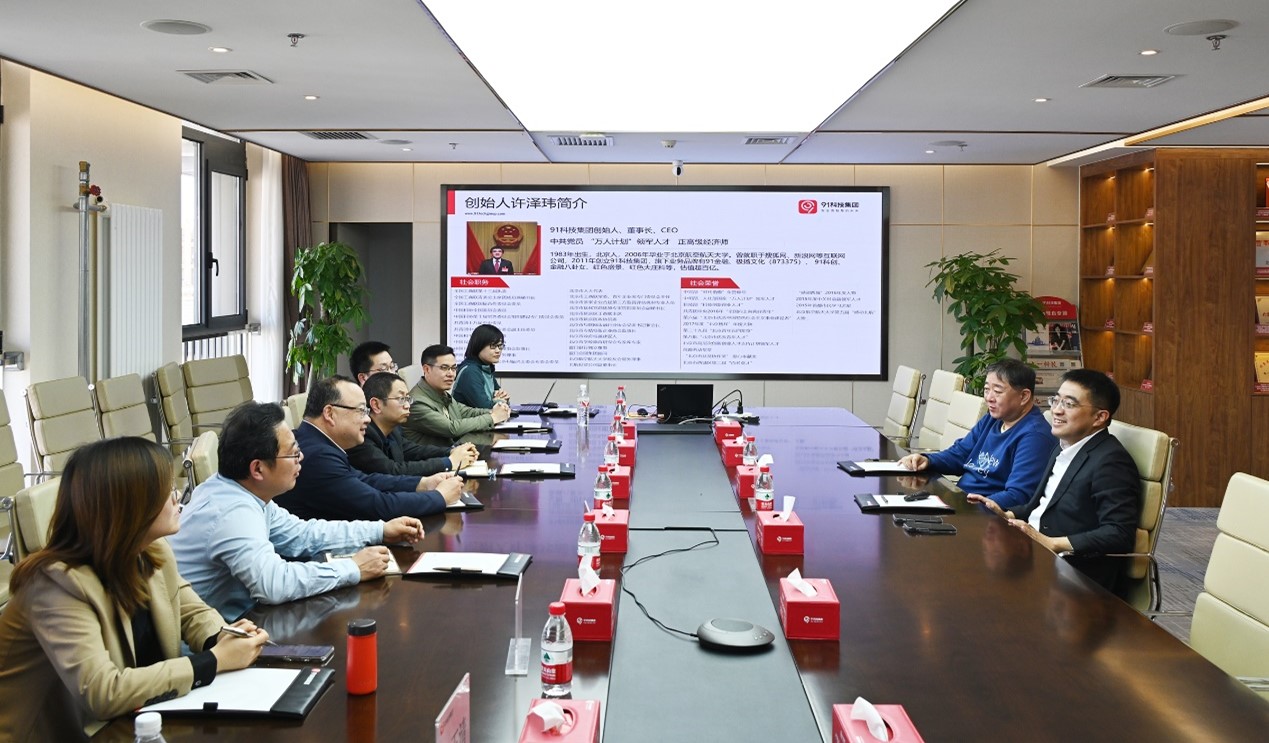 为深入贯彻中央八项规定精神学习教育,以高质量调查研究推动实现高质量发展,4月2日下午,球王会体育平台球王会体育官方网站院长赵义良、党委书记高宁带领学院教师代表赴校友企业91科技集团开展专题调研。91科技集团董事长许泽玮、副总裁赵新热情接待并参与座谈。