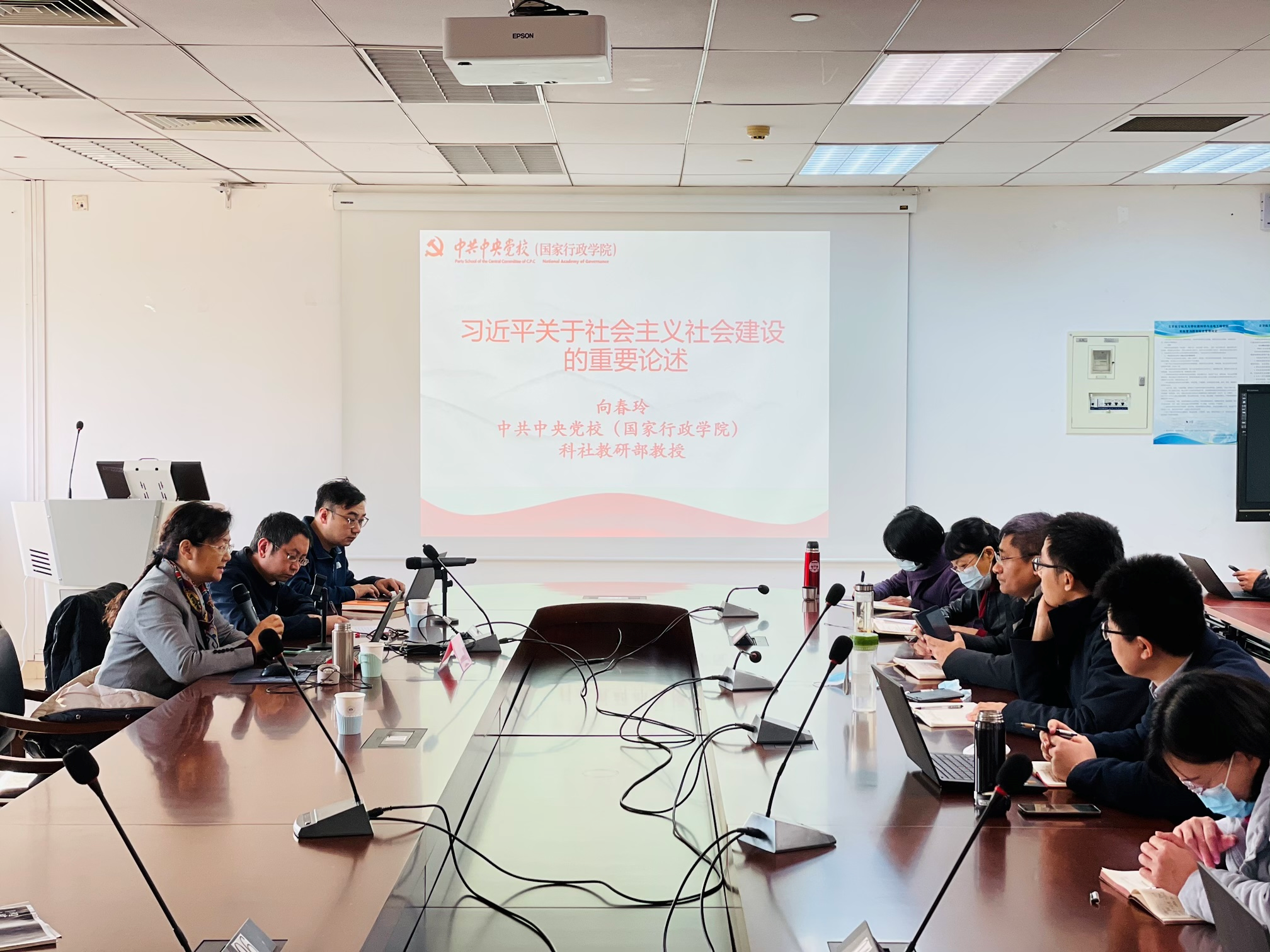 12月11日上午,球王会体育官方网站第十五次集体学习日活动在新主楼B座707室举行。中央党校向春玲教授应邀作了《习近平关于社会主义社会建设的重要论述》专题报告,活动由学院书记高宁主持,球王会体育官方网站师生30余人出席。