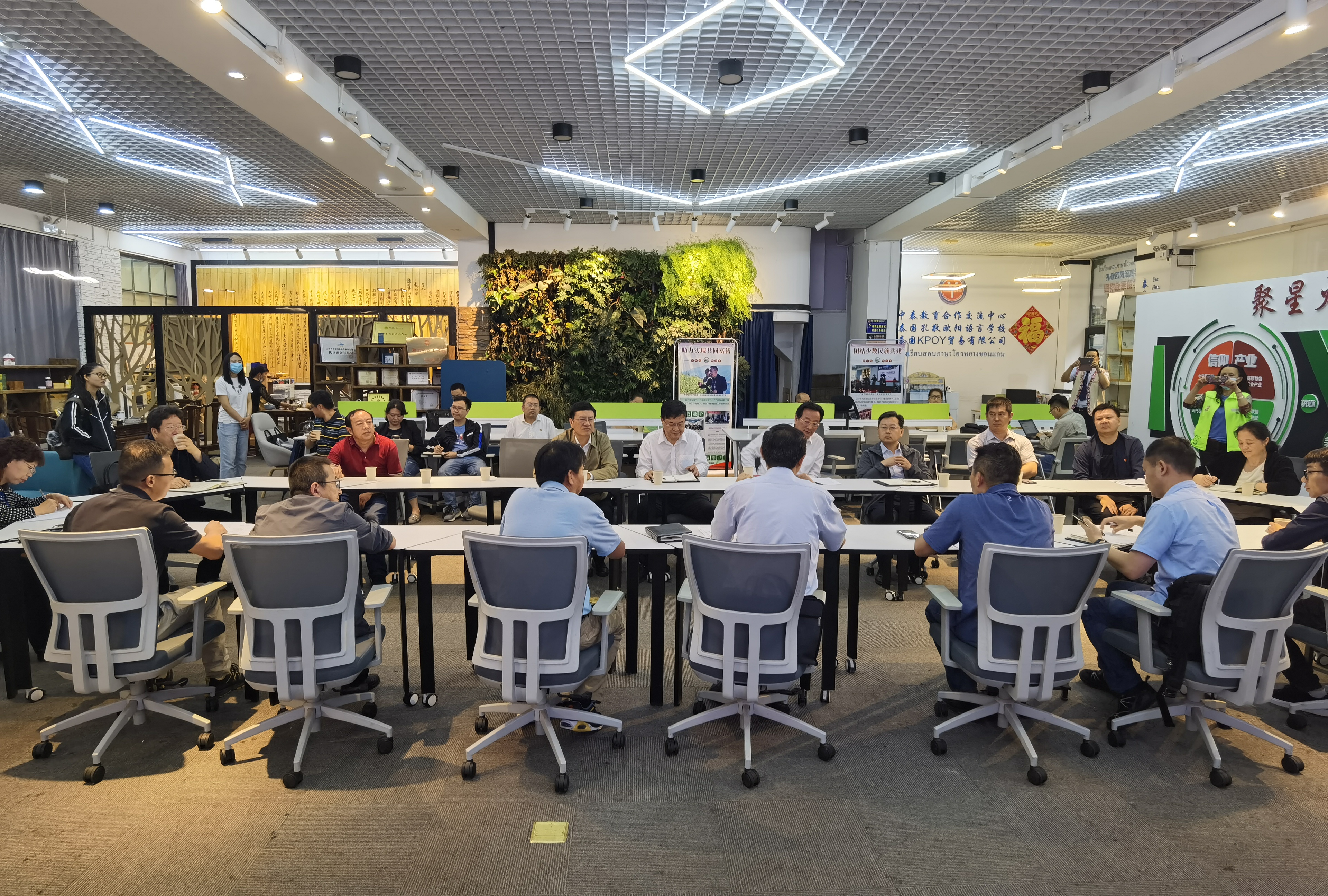调研组一行先后对我院慧农时邦·产教联盟众创空间、高原特色农业产业孵化中心、少数民族生态绿色食品展销专柜进行实地查看,并听取了相关工作的情况介绍,与我院产教联盟负责人共同探讨了少数民族文化产业发展和实施民族团结创建工作中的难点、热点问