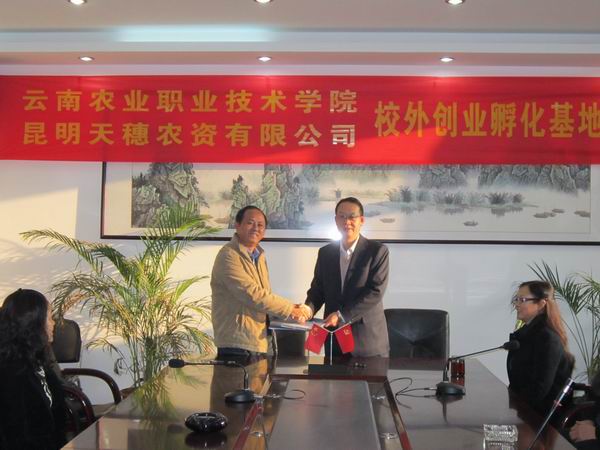 2012年12月6日,我院与昆明天穗农资有限公司签订了建立校外创业孵化基地的协议,现校外创业孵化基地初见成效。该公司一直是我院学生顶岗实习、毕业实习以及就业的基地。该公司现有员工110人,其中三分之二为我院毕业生。校企合作建立的创业基地,为学生自主创业提供了优良的孵化场所,帮助学生成功实现创业。(招生就业处供稿)