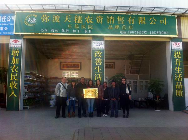 我院招生就业处于2013年11月5日赴天穗农资公司校外创业孵化园之一的弥渡天穗农资销售有限公司进行了调研,并授予该店“sunbet集团中国官网入口大学生创业示范店”称号。