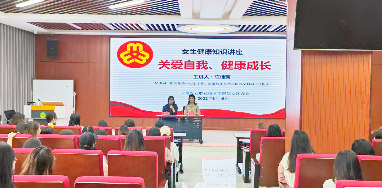 通知中心为关爱女生生理和心理健康,提升其自我保护意识和能力,6月16日下午,学院妇女联合会邀请昆明同仁医院体检中心副主任、原解放军昆明总医院(43医院)全科副主任医师陈桂芳老师在茭菱校区A2栋401报告厅,为互联网技术学院女生作健康知识专题座,此次讲座由互联网技术学院党总支部副书记胡琼老师主持,120余人女生参加。