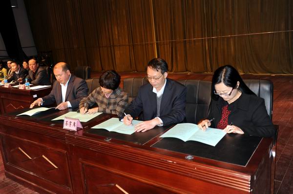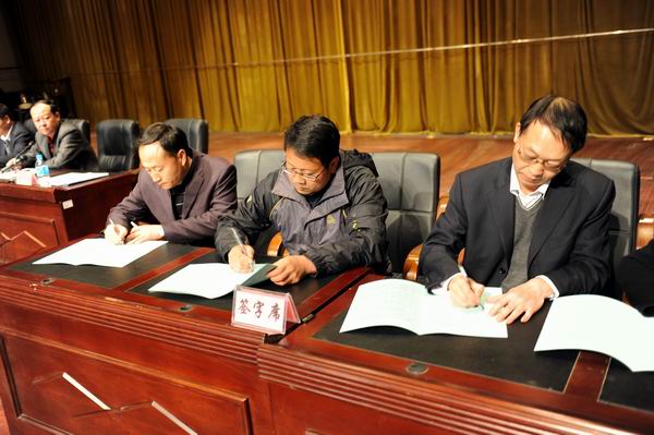 学院党委书记崔金赋、院长彭志远与教育厅签订2013就业工作责任书;党委书记崔金赋、院长彭志远与主管招生就业的俞浩副院长签订了学院2013就业工作责任书;俞浩副院长分别与招生就业处潘彦维处长,畜牧兽医系党总支书记钱林东、系主任赵跃,园艺与园林工程系党总支书记董文红、系主任唐世凯,生物工程系党总支书记许邦丽、系主任王孟宇,管理与信息工程系党总支书记黎红梅、系主任谭琳等签订了学院2013就业工作责任书。(党委宣传部 供稿)