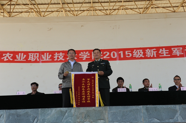 表演结束后,李永忠院长代表学院向昆明民族干部学院一大队赠送了题为“军民携手共建美好学校,鱼水交融长存深情厚谊”的锦旗,表达了sunbet官网师生对昆明民族干部学院一大队全体官兵的崇高敬意、衷心的感谢与深情厚谊。学校副院长、军训团副政委俞浩宣读了军训优秀学员名单,对军训成绩优秀、表现突出的学员予以表彰。昆明民族干部学院一大队政治委员司马迅灵同志讲话。