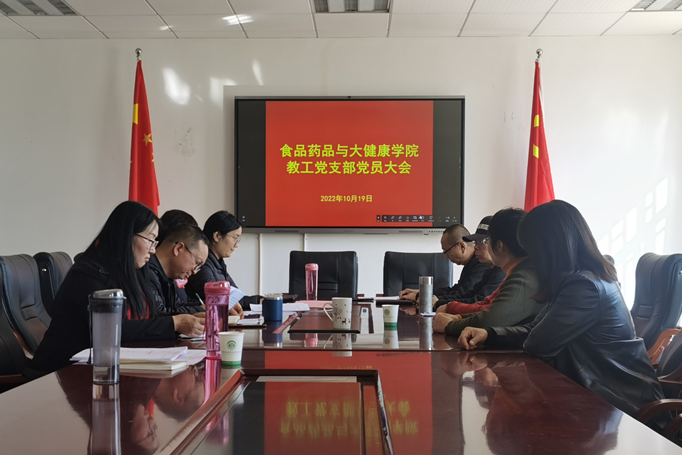 随后,食品药品与大健康学院教工党支部、学生党支部召开党员大会,组织全体党员认真学习研讨习近平总书记代表第十九届中央委员会向大会作的报告。两个支部党员在观看党的二十大开幕会的基础上,再次集中学习研讨,并联系实际工作谈认识理解、谈体会感悟。