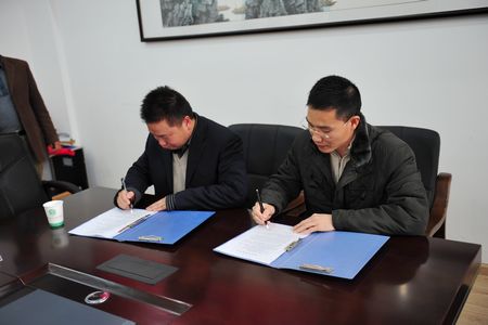 彭志远院长(左)与潘则宏总经理签订合作协议