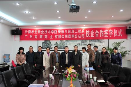 广州南雪药业有限公司昆明分公司总经理潘则宏在致辞中强调,与我院管理与信息工程系合作是一种荣幸,表示要努力把双方的合作办成功!展望在深化合作的基础上能够在科研项目合作上也有所拓展。