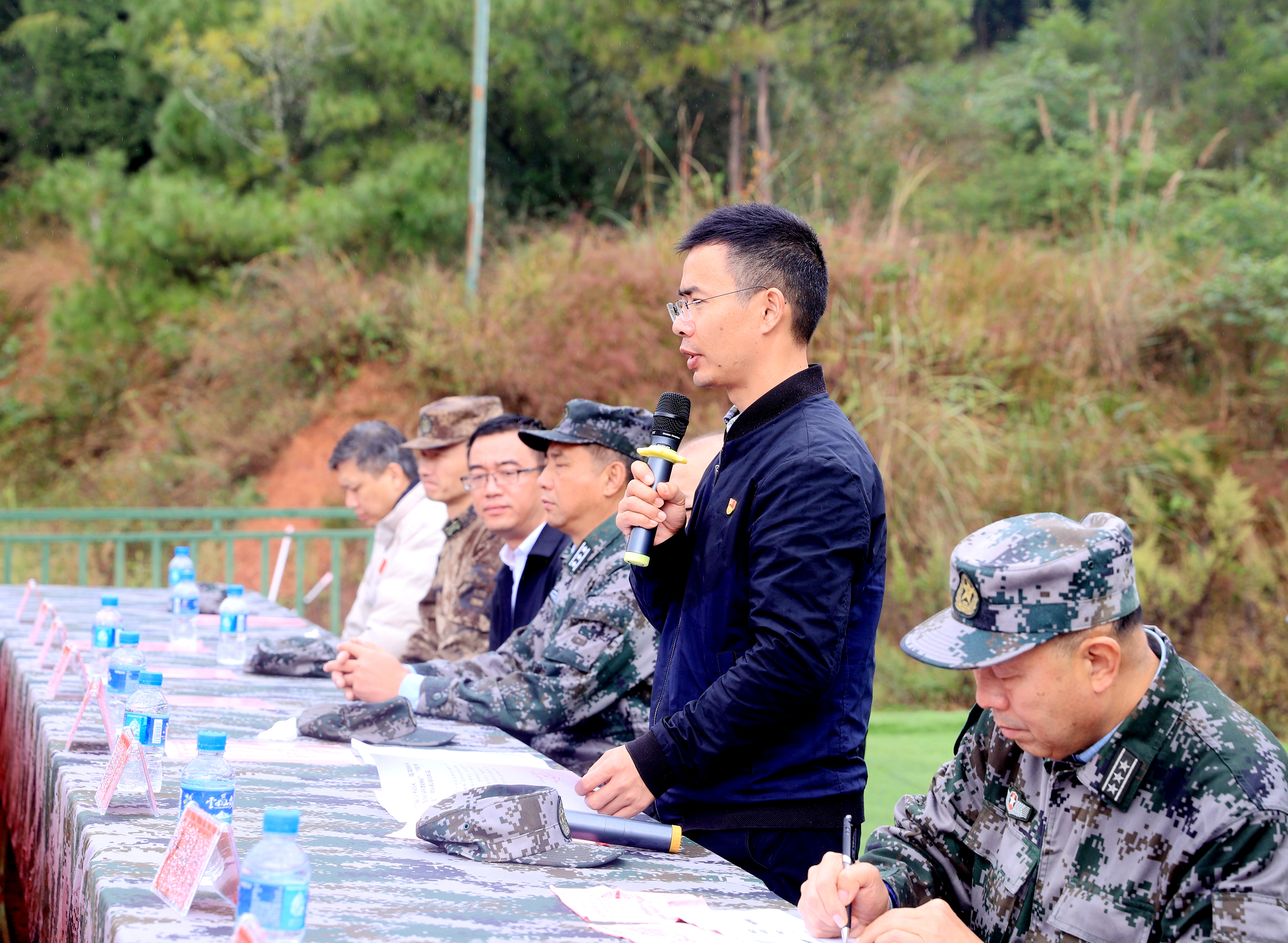 昆明兵站学生军训基地负责人杨锡光上校发言,他对全体新生的训练及汇演给予了高度肯定,希望同学们在思想政治上更进一步,热爱祖国,热爱国防,热爱学校,热爱专业。杨锡光上校指出,在同学们军训期间,党的二十大胜利召开,同学们在军训基地共同收看了党的二十大开幕盛况,认真聆听习近平总书记代表第十九届中央委员会所作的报告,希望同学们以党的二十大精神为指引,坚定不移听党话、跟党走,立志做有理想、敢担当、能吃苦、肯奋斗的新时代好青年。