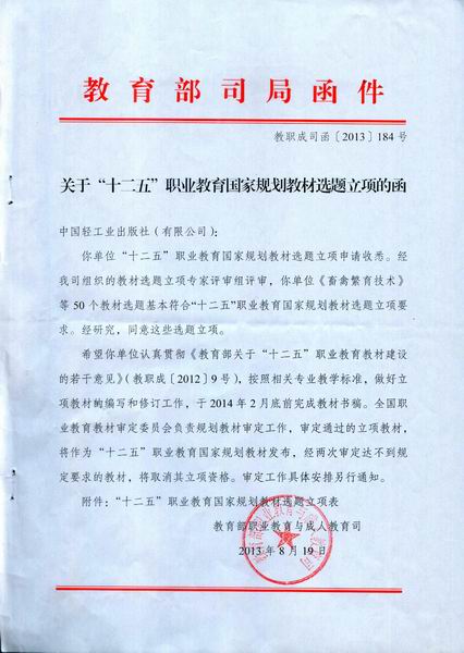 根据“教育部职业教育与成人教育司”的通知,由我院畜牧兽医系教师朱兴贵主编的教材《畜禽繁育技术》获教育部“十二五”规划教材立项。该教材将作为“十二五”职业教育国家规划教材在全国发行。