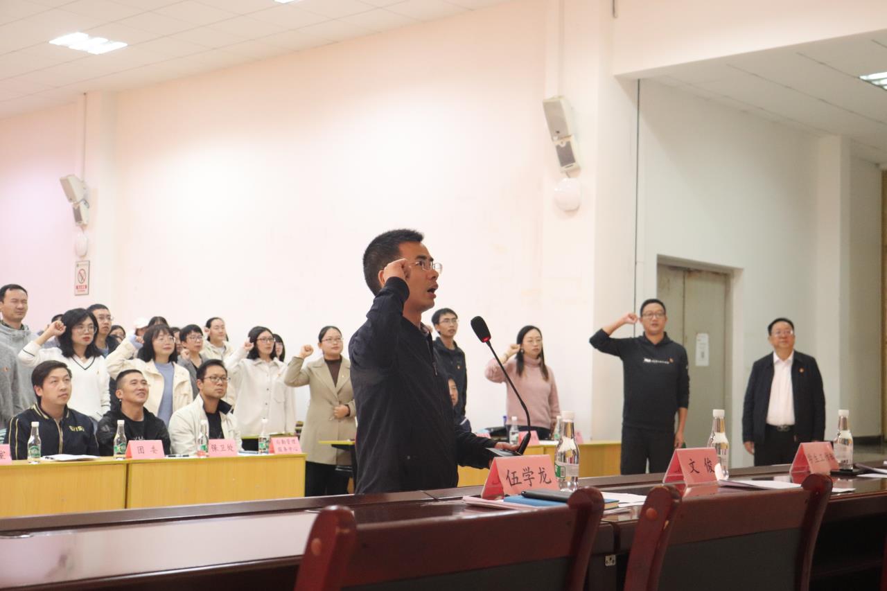 伍学龙副书记带领全体辅导员庄严宣读《高校辅导员誓词》