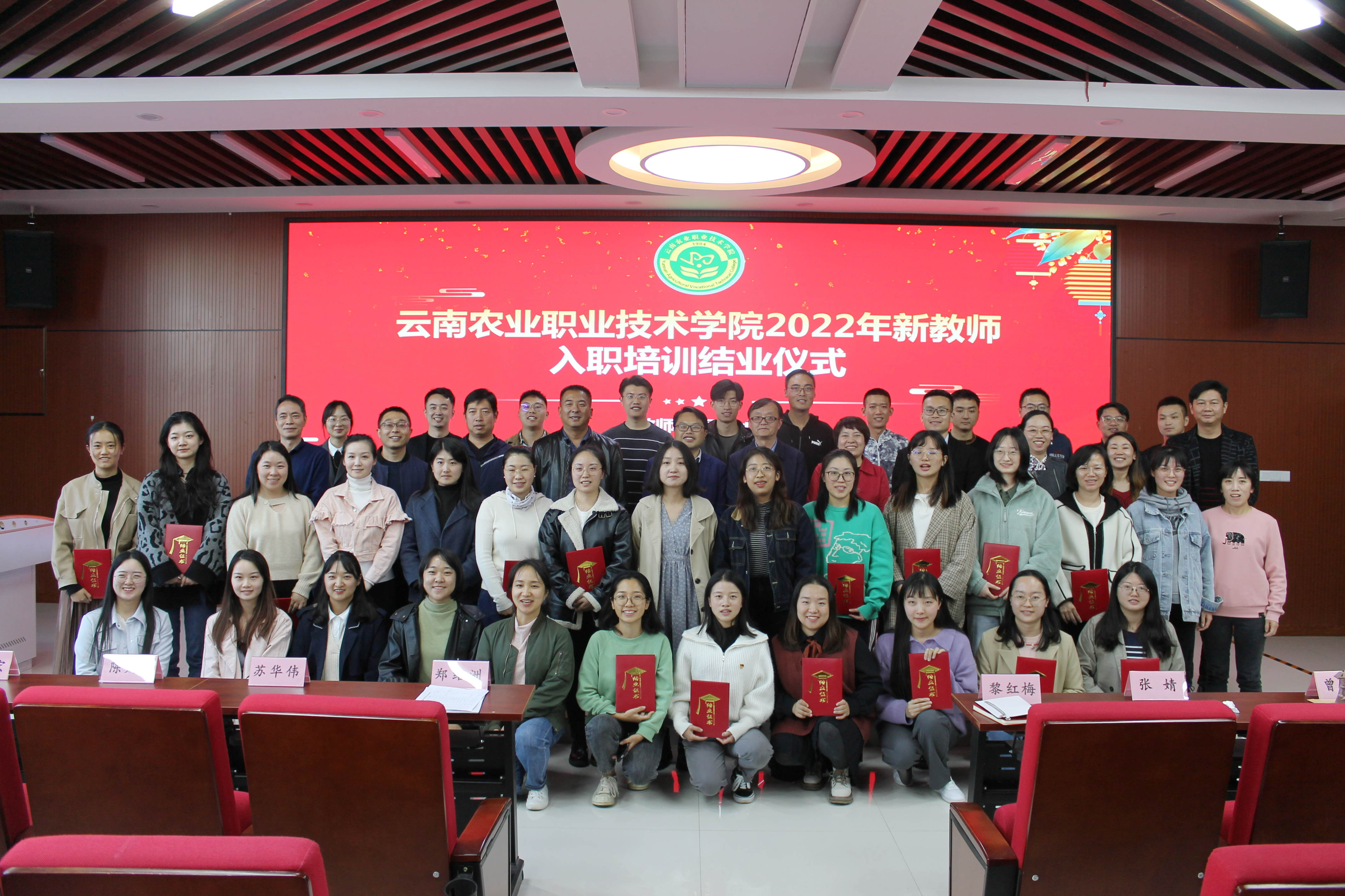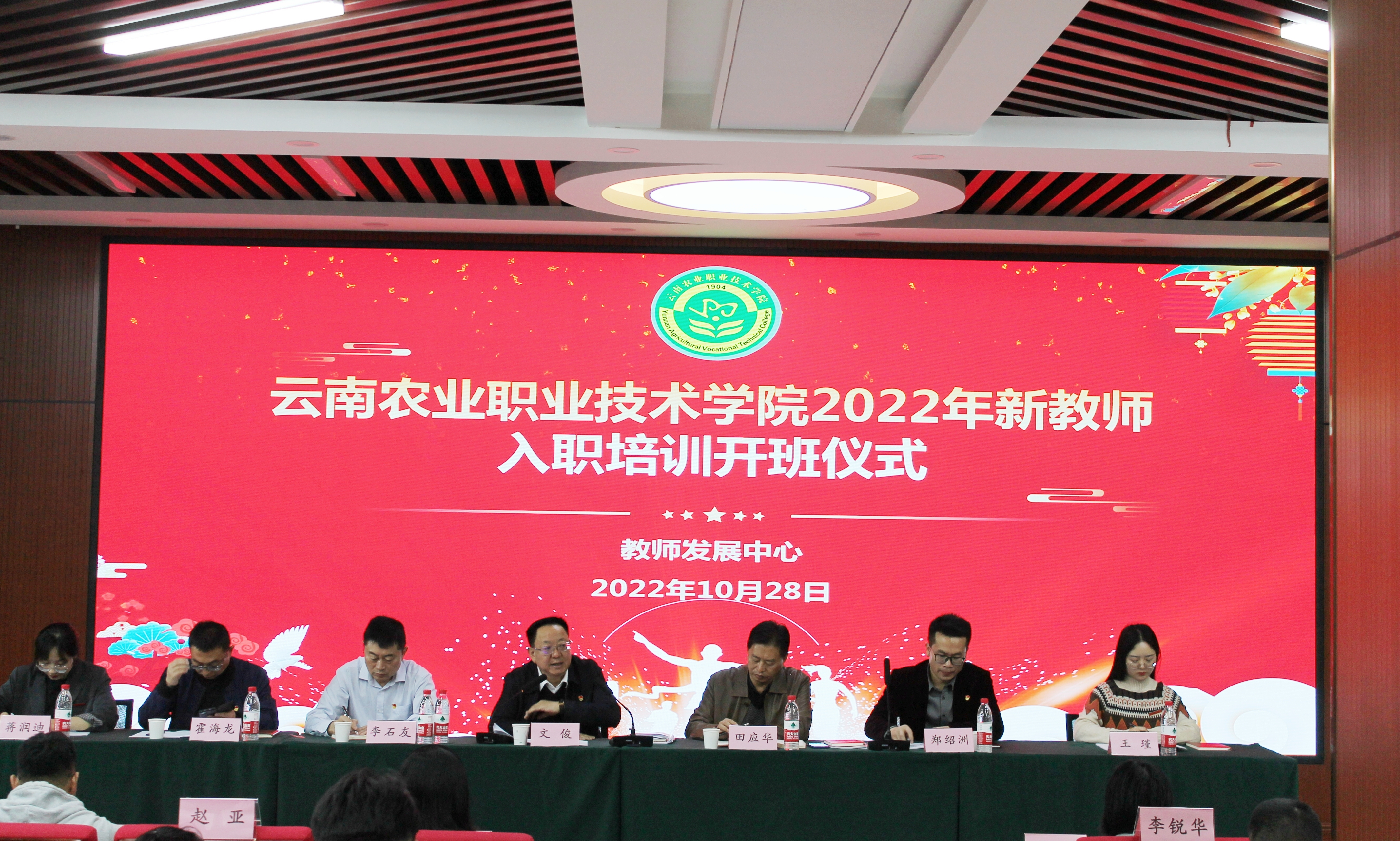 院长陈太安分析了学校的发展现状、定位和目标,介绍了近年来学校取得的成果和特色优势。并分享自身的从教感悟,希望与新教师一起齐心协力,不负期望,共同努力,为云农职的发展添砖加瓦!党委副书记伍学龙从学生的特点和学生工作的理念等多个角度出发,就如何做好班级管理工作、如何处理学生突发事件等方面提出真知灼见,并鼓励新教师们在教学中挖掘课程中的德育元素。
