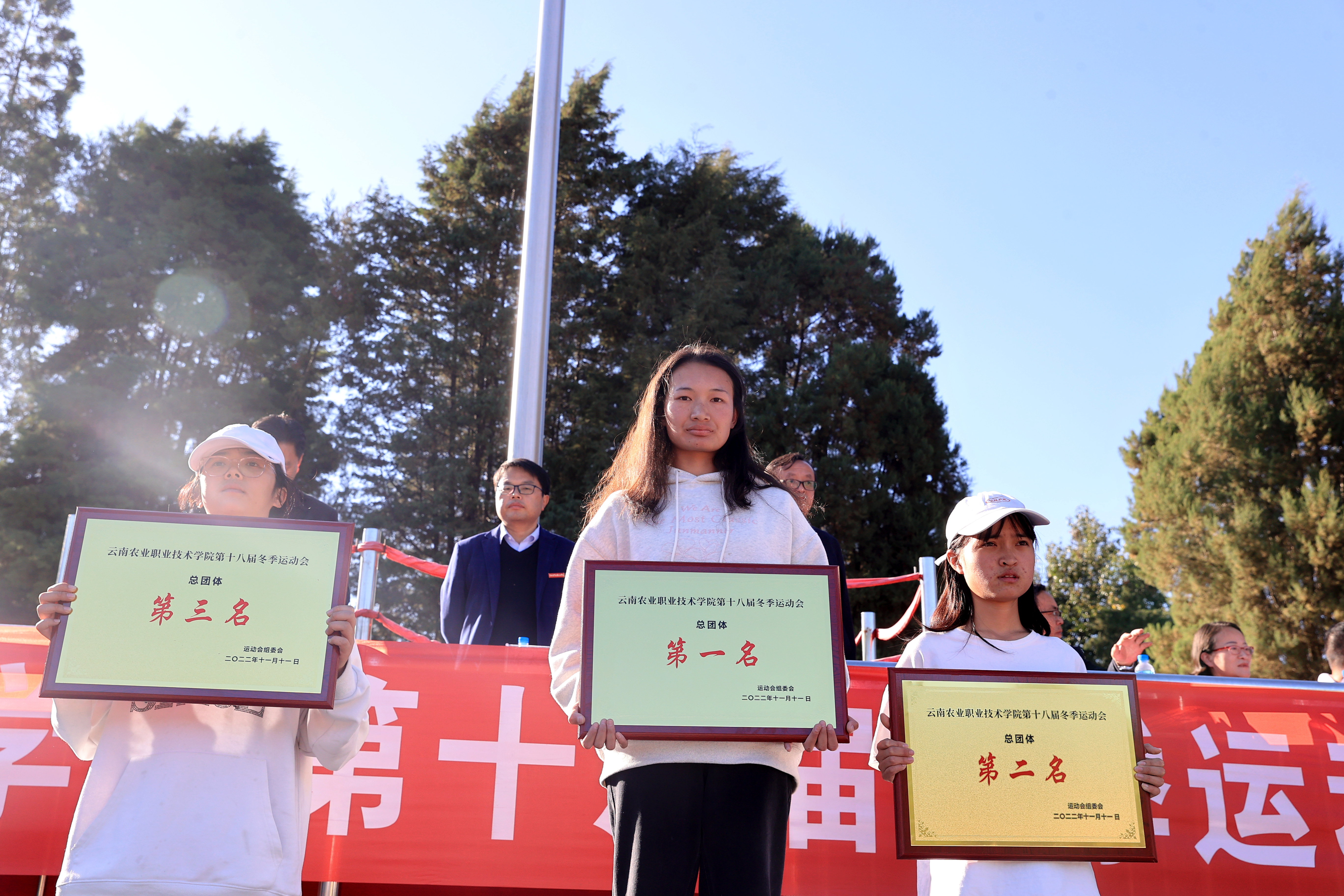本次运动会共产生了224个单项奖,9个团体奖,2个道德风尚奖和3个优秀组织奖;多个项目如学生男子铅球、女子3×100米接力赛、男子4×300米接力赛等打破校运会纪录,赛绩喜报频传!纪委书记冯志宏宣读本届运动会获奖名单,主席台领导为获奖团体、单位颁奖。在同学们热情的欢呼声中,获奖团体代表领取奖牌并集体留影。