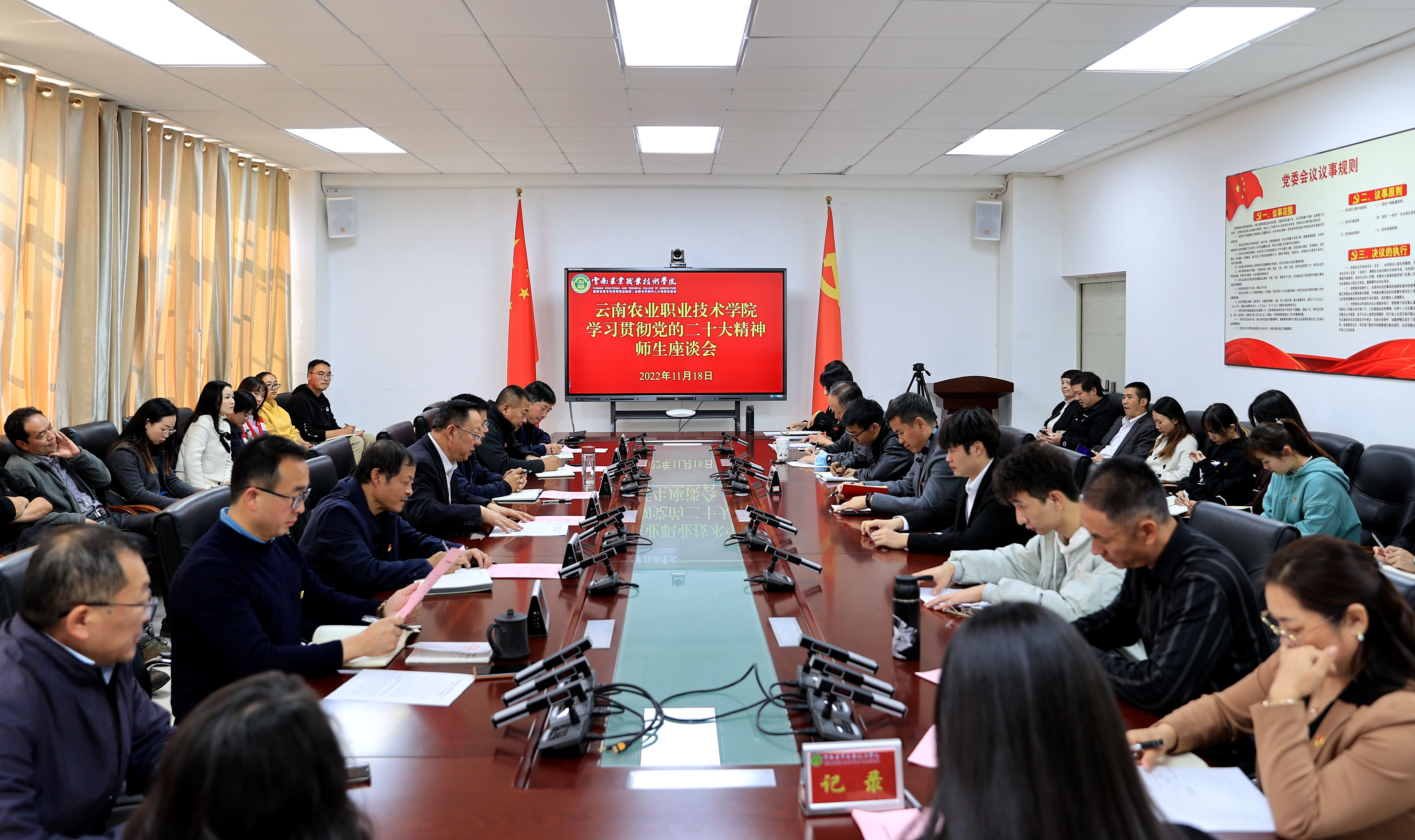 通知中心11月18日下午,学院在小哨校区综合楼四楼会议室召开学习贯彻党的二十大精神师生座谈会。学院党委书记文俊、党委副书记伍学龙、副院长雷衡、副院长苏华伟;党委委员、工程学院党总支书记王军明,党委委员、组织部部长夏体韬出席会议,学院各职能部门主要负责人、各二级学院主要负责人、师生代表、民主党派代表和无党派人士、校友代表参加座谈。座谈会由学院党委书记文俊主持。