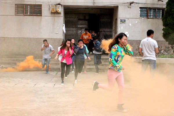 首先,由学生工作处周诚处长介绍参加本次消防安全演练的领导、老师。演练开始前,我院保卫处处长李昆作动员讲话。云南省消防中心吴教官做动作示范及讲解,并指导各位老师带领学生到达指定地点。一阵急促的警报声拉开了消防安全演练的帷幕,各位老师指导学生快速疏散,带领学生低头,捂住口鼻,扶着楼梯扶手快速撤离,并有序撤离到学校篮球场的安全地带,随即各队第一位同学清点人数,并汇报总指挥。接着,云南省消防中心吴教官现场演示了灭火器如何使用的操作程序,让部分学生亲自体会操作使用灭火器灭火的过程,使师生们掌握了正确使用灭火器的操作方法。