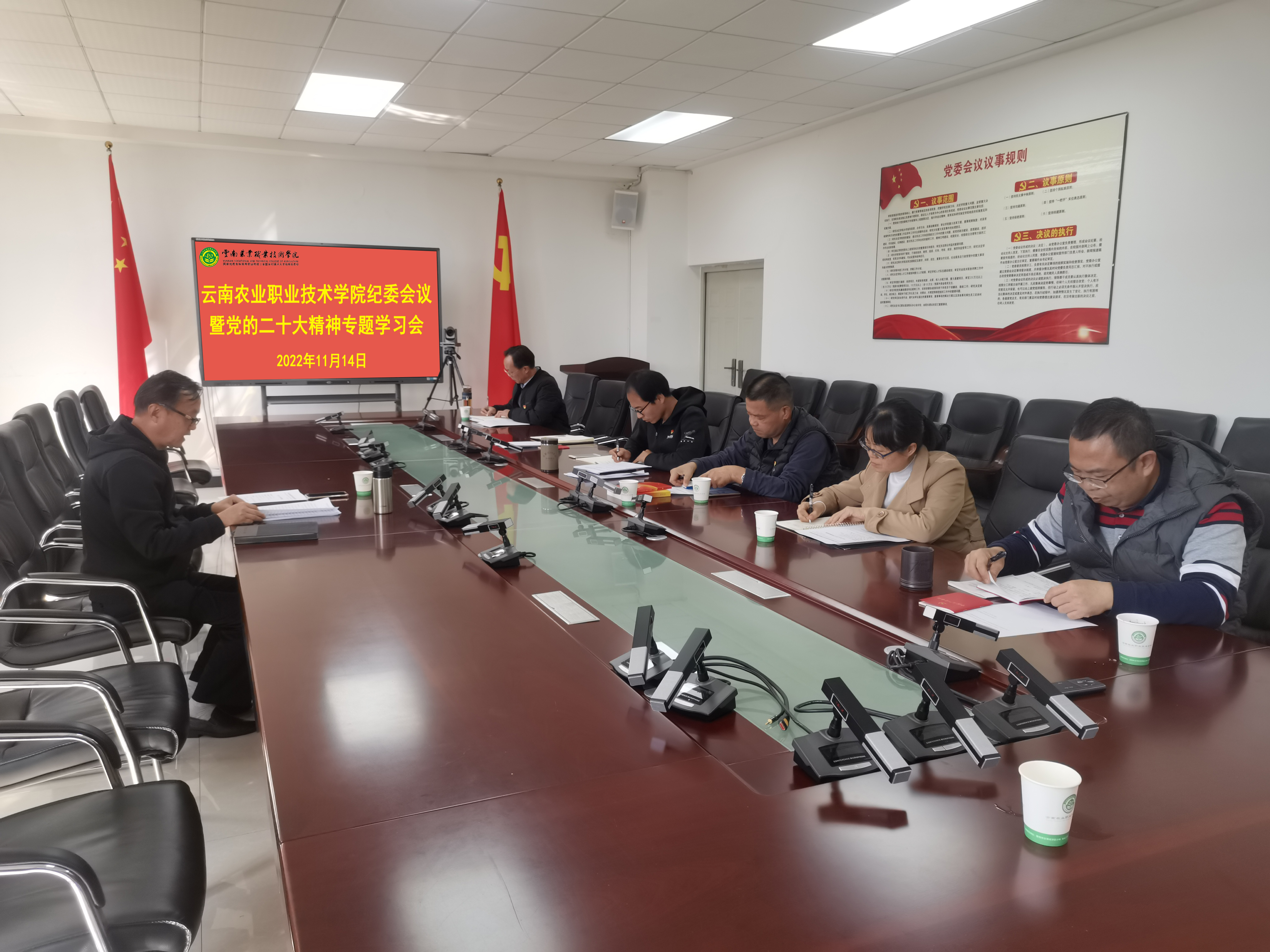 通知中心11月14日学院纪委在小哨校区四楼会议室召开纪委会议专题学习党的二十大精神,学院纪委书记冯志宏主持会议并讲话,学院纪委委员、纪检处全体人员、云南省种畜繁育推广中心党总支纪检委员参加学习。