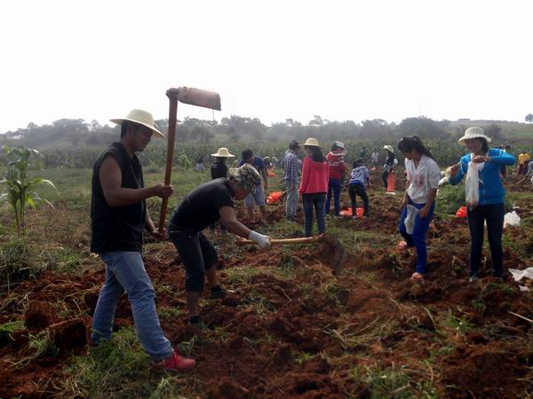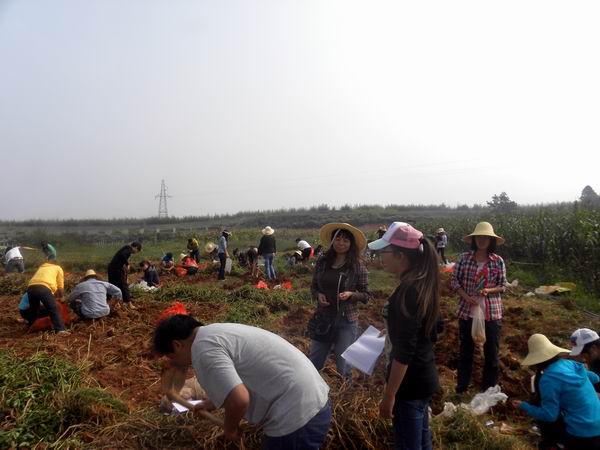 金秋时节,生物工程系校内实训基地的马铃薯成熟了。9月23日,在赖丽芳、张兰芬等教师的指导下,2012级种子生产与经营一班、2012级作物生产技术一班、二班的近百名同学共同努力,完成了近3亩29种马铃薯“品种产量对比试验”的采收工作,马铃薯亩产达2吨。(生物工程系供稿)