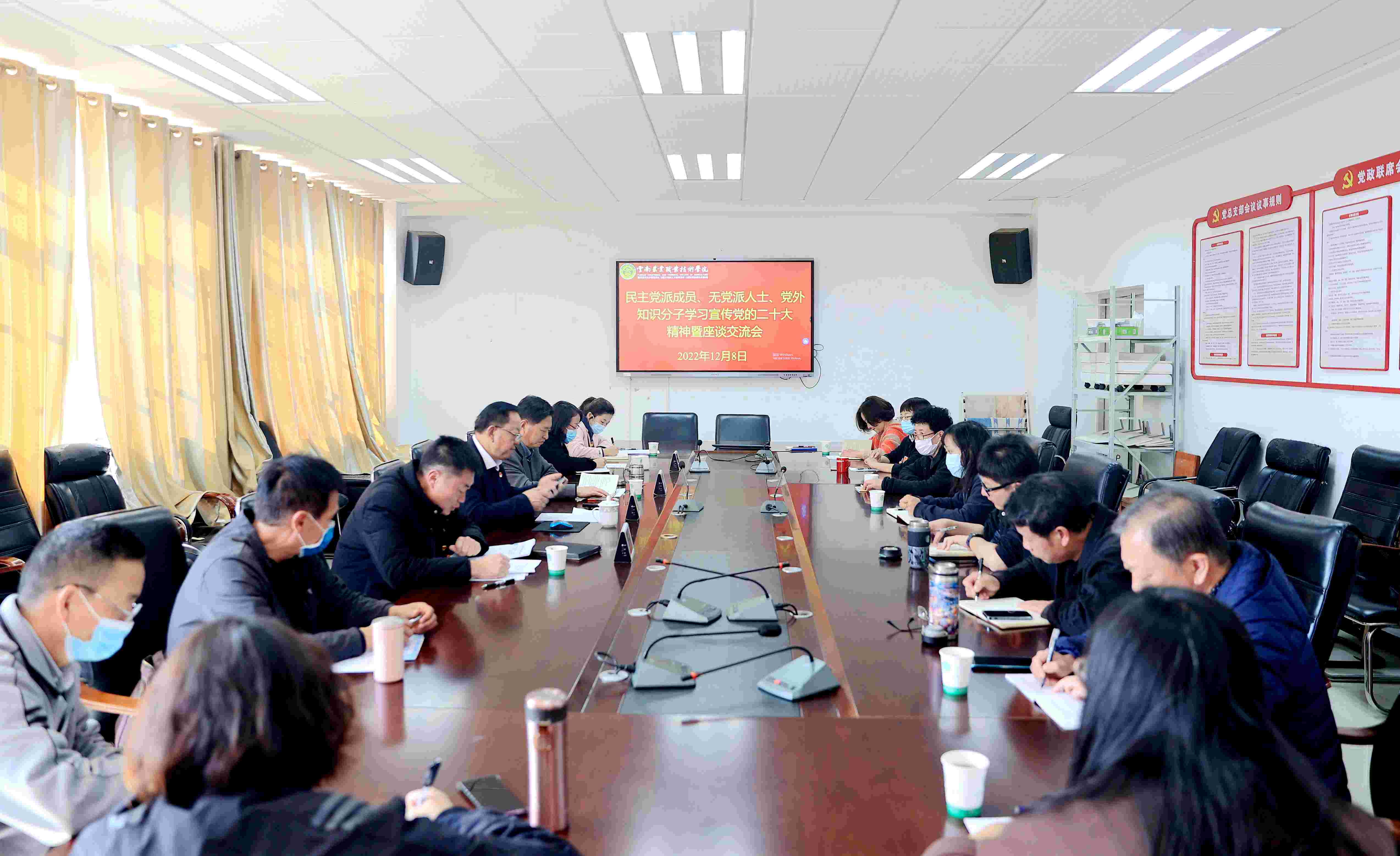 通知中心连日来,学院学习宣传贯彻党的二十大精神宣讲团通过开展全方位、多层次的学习宣讲,在广大师生中间持续掀起学习宣传贯彻党的二十大精神热潮,切实将学习成效转化为推动学院高质量发展的强大动力,激发师生奋进新时代的坚定信念。党委班子成员带头,分别到所在党支部、分管联系部门、思政课课堂、挂钩帮扶点、统一战线座谈交流会等不同场合,分批次、分层次先后走进教室、登上讲台、深入基层,与师生群众面对面宣讲党的二十大精神。