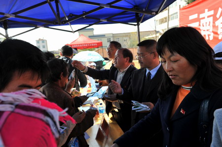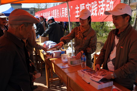 11月19日,云南省农业厅、昆明市农业局与嵩明县委在嵩明县牛栏江镇休闲广场联合开展“深入推进创先争优,志愿服务人民群众”主题实践活动。此次活动由省农业厅机关党委组织,农业厅科教处、sunbet集团中国官网入口等所属25家窗口单位派出专家党员62人积极开展义务咨询服务三农活动。我院由党(院)办主任凌军率领园艺与园林工程系党总支书记副教授唐世凯、畜牧兽医系朱兴贵副教授、生物工程系李淑芬副教授,以及组织部曾丽萍副部长、党委宣传部蔡永生副部长等在牛栏江镇开展服务活动。