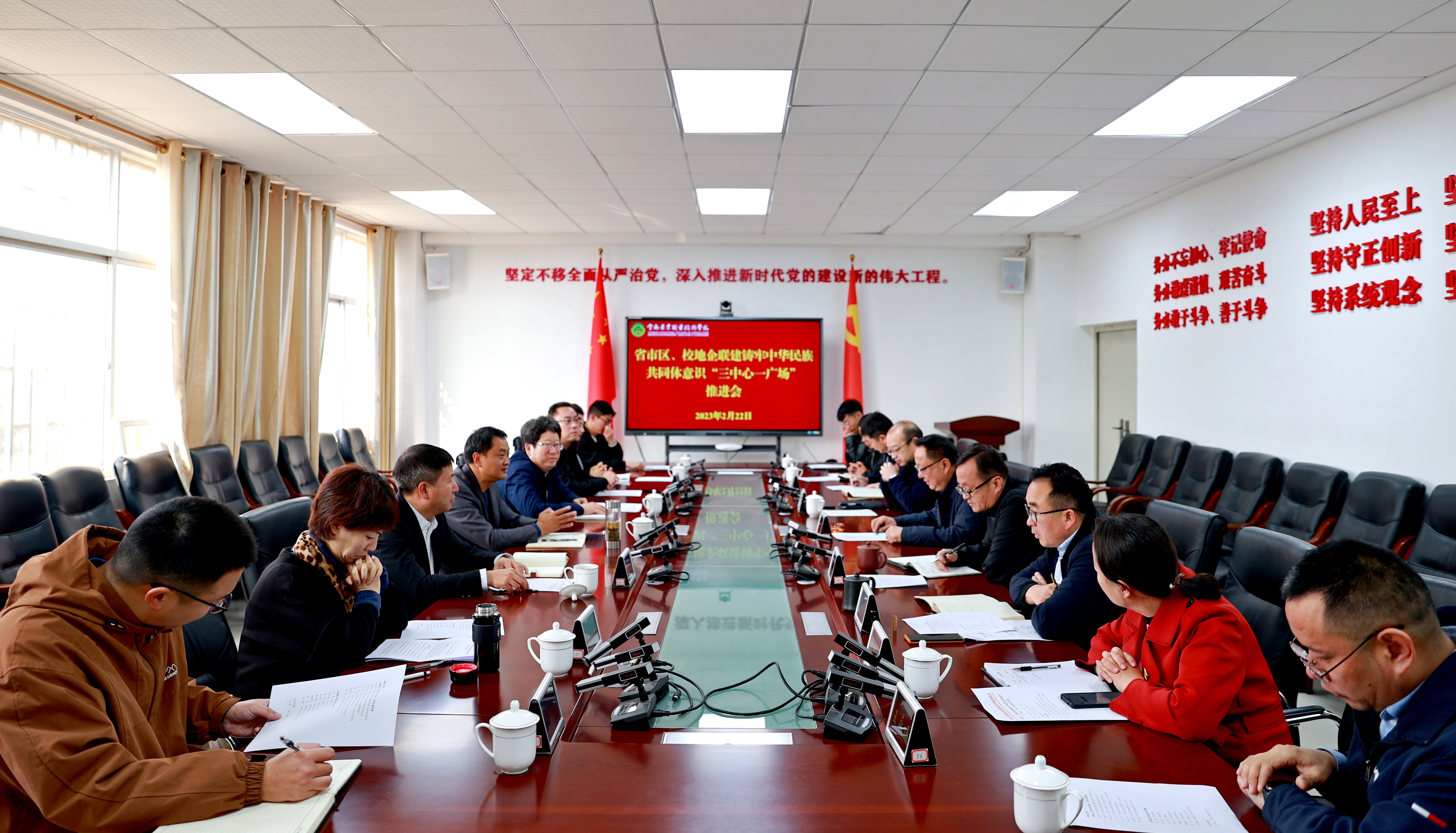 通知中心2月22日,省市区、校地企联建铸牢中华民族共同体意识“三中心一广场”推进会在我院小哨校区综合楼4楼会议室举行,会议由杨波副院长主持。云南省民族宗教事务委员会城市处处长沈亮均、昆明市民族宗教事务委员会副主任马汝庄、五华区委常委、区委统战部部长李正兴、五华区统战部副部长兼民族宗教事务局局长王菲、五华区民族宗教事务局副局长马竹以及学院党委书记文俊、纪委书记冯志宏、副院长杨波出席会议,五华区委统战部(区民宗局)、学院统战部、组织部、宣传部、基建办公室、创新创业学院相关领导和企业代表参加会议。