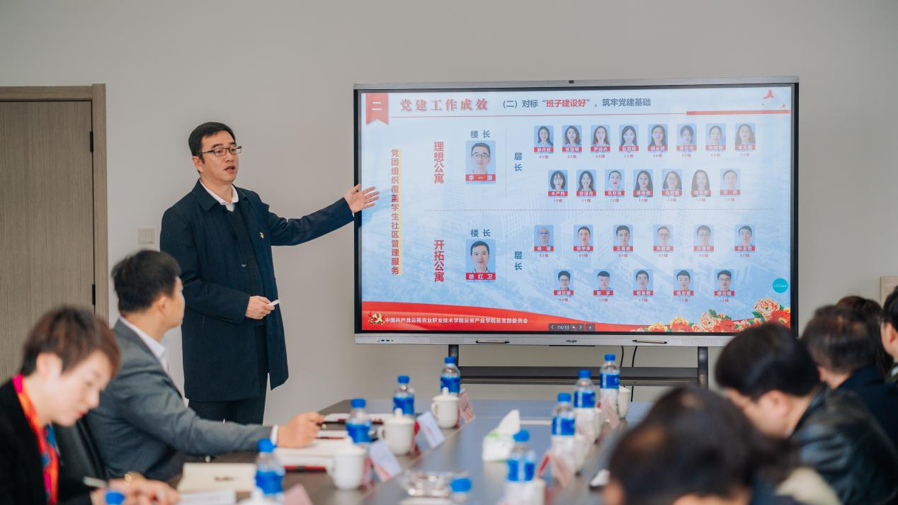 会上,云安产业学院党总支书记李一源就学院党总支基本情况及党建工作成效等方面首先进行了汇报,随后,院长徐红卫从云安产业学院校级高水平专业群建设工作推进情况、学校高质量发展三年行动计划学习落实情况及2023年工作要点等方面进行了详细汇报,与会人员针对汇报内容进行了交流发言。