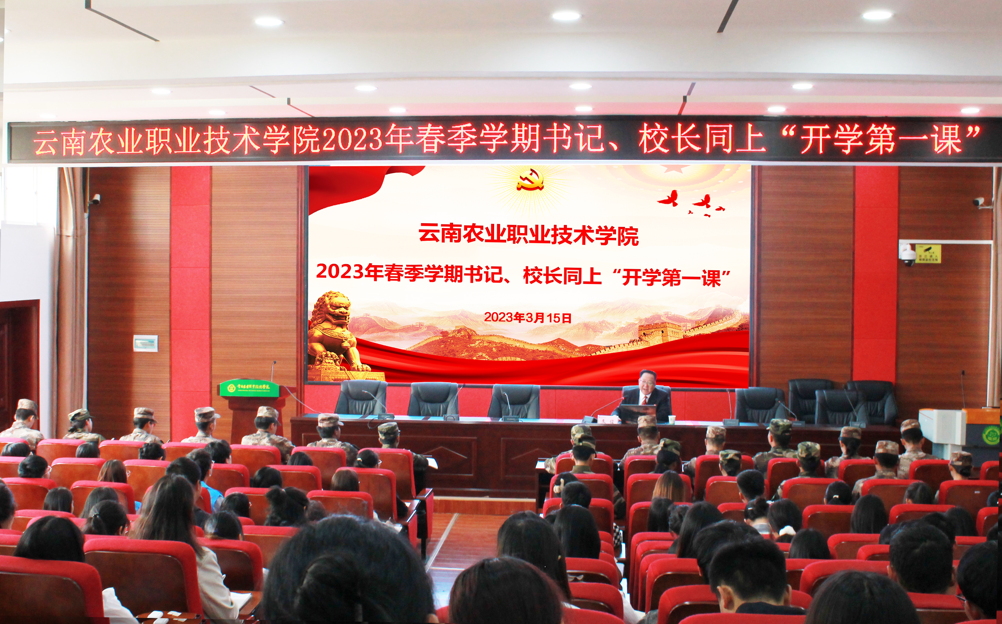通知中心3月15日下午,学院举行2023年春季学期“开学第一课”暨书记、校长“同讲一堂思政课”,党委书记文俊、院长陈太安为学生讲授了一堂意义深刻、激扬奋进的思政课。小哨校区各二级学院、易班工作站、民兵连学生代表等160余名同学参加了现场学习。