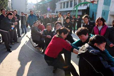 崔金赋书记、彭志远院长出席团拜活动亲自参加拔河赛