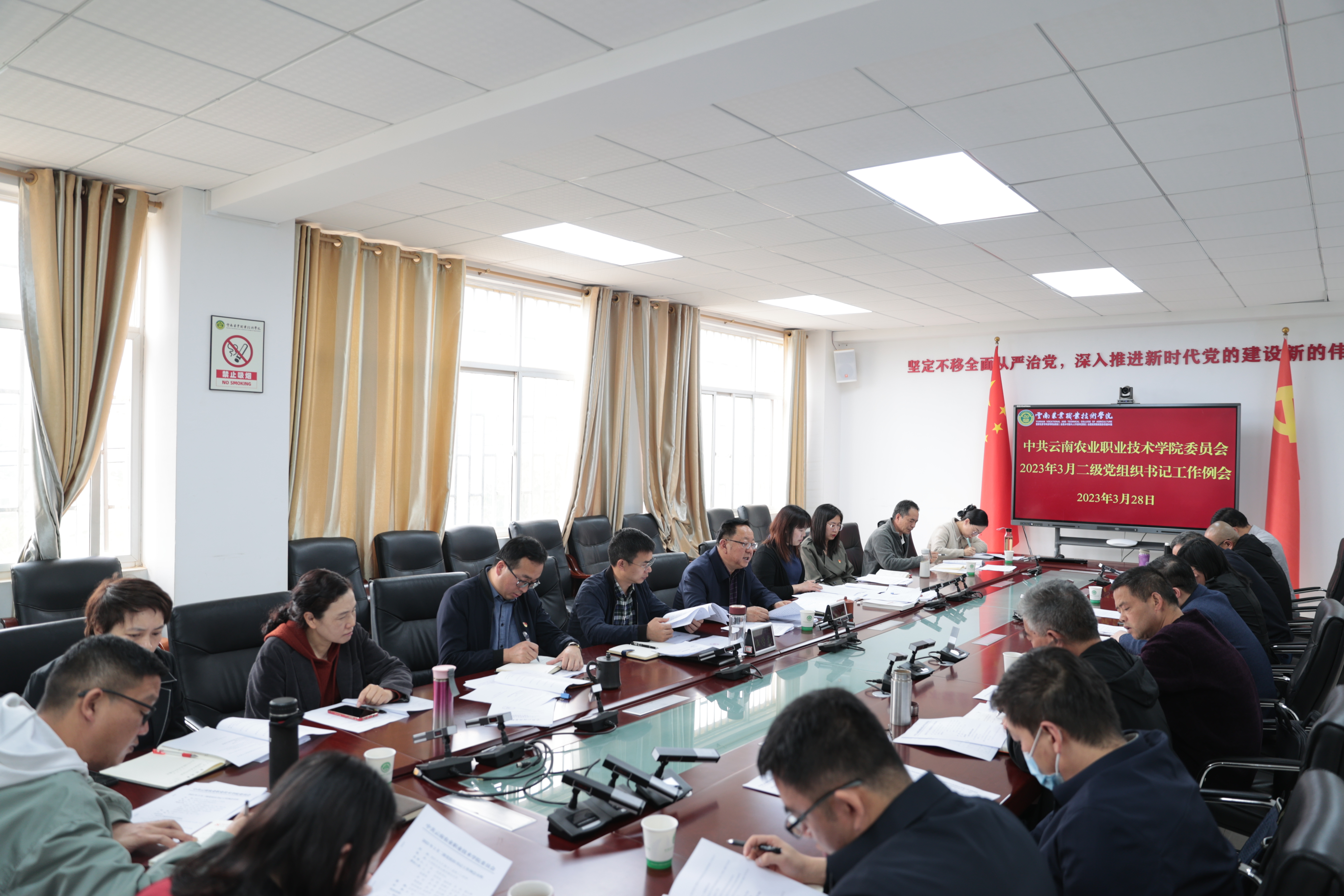 通知中心2023年3月28日,学院党委在小哨校区组织召开了3月份二级党组织书记工作例会。会议由学院党委书记文俊主持。党委副书记伍学龙同志,各二级党组织书记,办公室(党委巡察办)、纪检处、组织部、宣传部、团委、工会、妇联等部门主要负责人和有关工作人员参加会议。