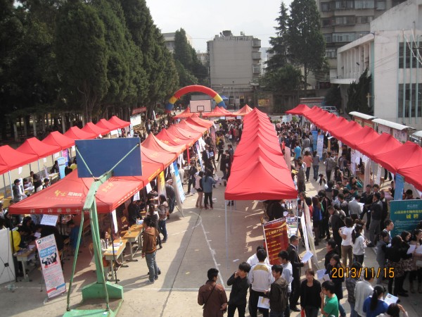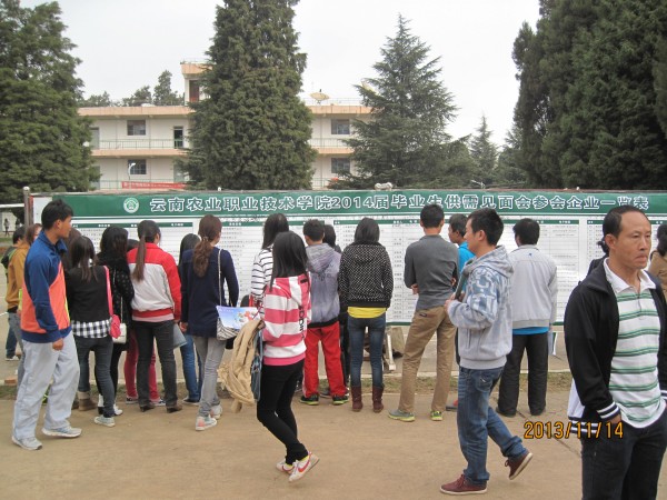11月14日-15日,学院招生就业处分别在小哨校区篮球场和茭菱校区篮球场举办2014届毕业生供需见面会。此次见面会共吸引200余家企业来学院招聘即将毕业的学生,其中不乏双胞胎集团、神农集团、天穗公司等全国著名农业类大企业,也有如中国联通云南分公司、中国东方航空公司、百事公司等知名单位进场招聘。