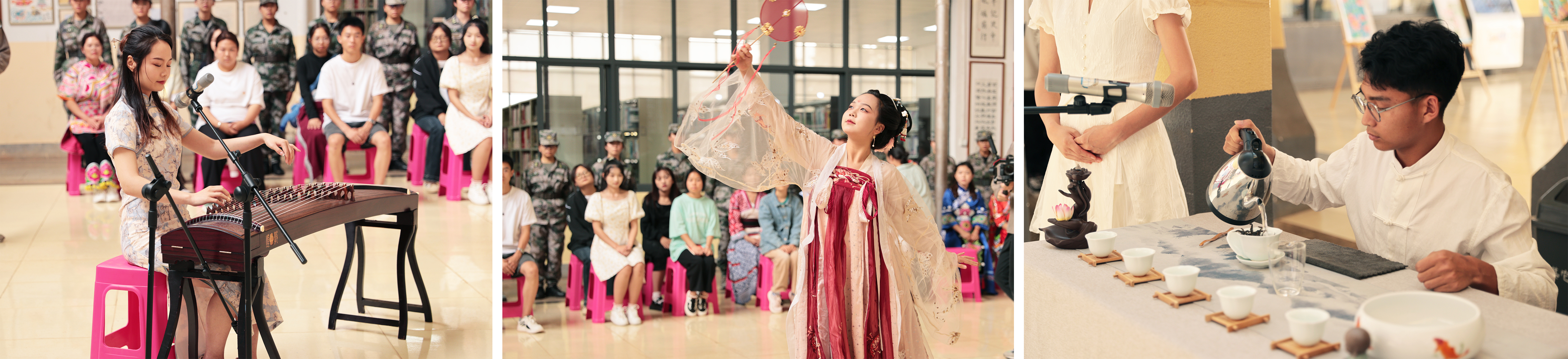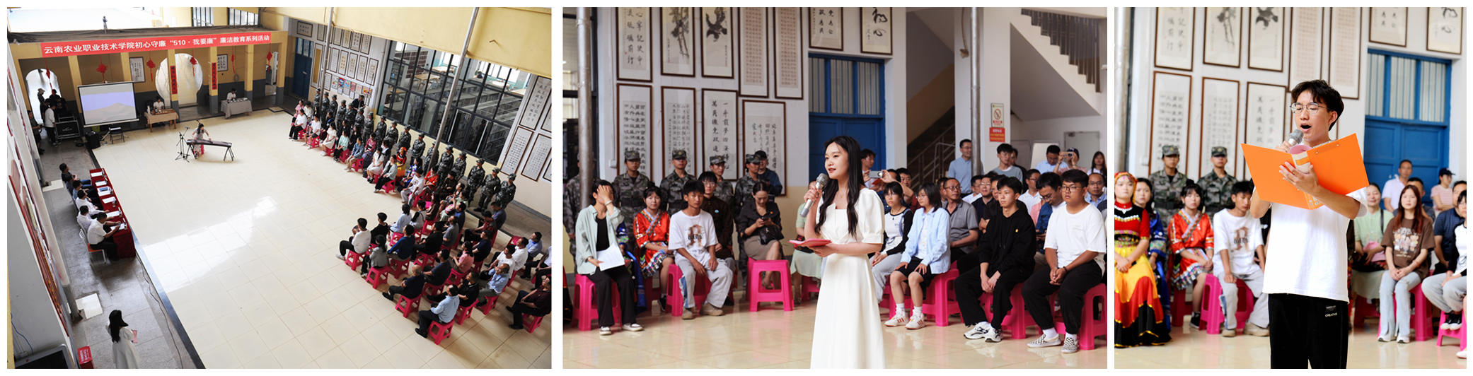 活动中,来自基础部的仵珂昕老师为大家用古筝演绎了经典曲目“采菊东篱下”,传递了农职师生始终刚正不阿、勇于拼搏、始终保有出淤泥而不染的气节的精神内涵;学院汉服社的10余名同学通过素雅精致的“廉洁”中式古典服饰传播清廉理念;来自朗诵社的同学为现场师生朗诵了本次优秀征文作品《喻廉洁》,情真意切地讴歌了清正廉洁的可贵品质;来自茶艺社的同学们以精湛的茶艺表演展示出“一杯清茶问今古,两袖清风为苍生”的精神向往。