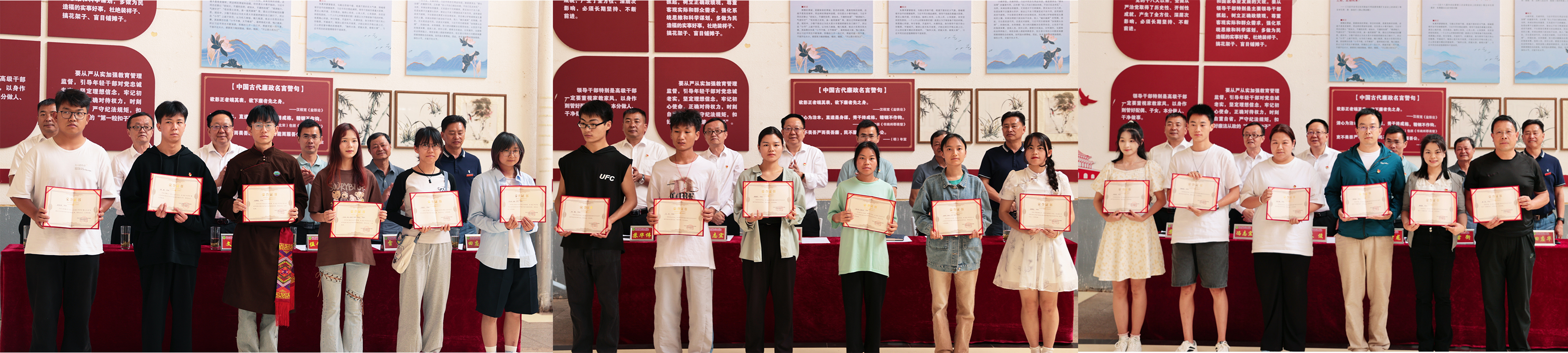 学院领导为校园征文优秀作品、情景剧视频优秀作品、平面创意设计优秀作品、绘画类优秀作品、书法类优秀作品进行集体表彰;为学院范围内选树的3个教师家庭授予“清廉家庭”称号。