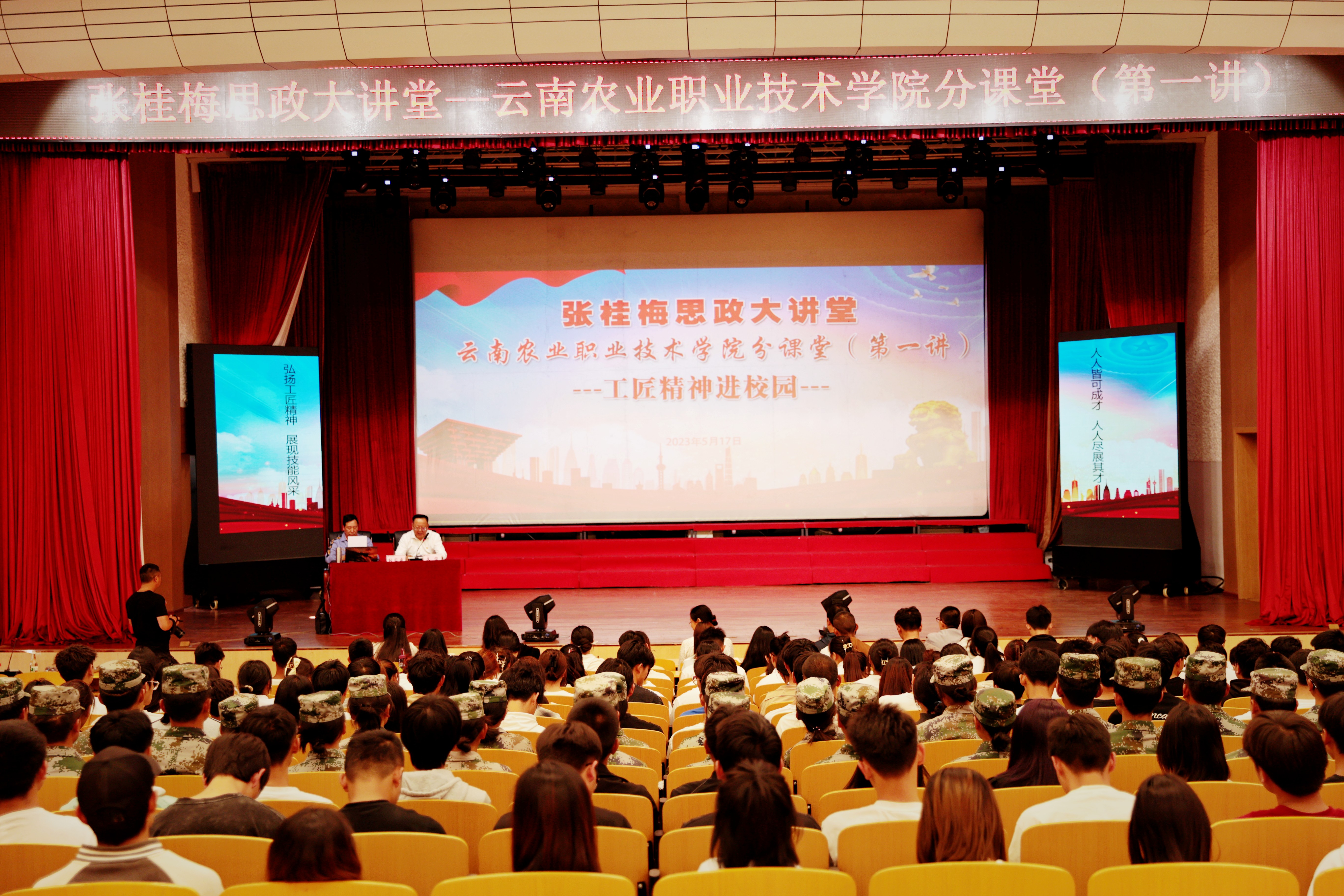 为弘扬工匠精神,激励更多农职学子走技能成才、技能报国之路,5月17日,“张桂梅思政大讲堂”sunbet集团中国官网入口分课堂第一讲“工匠精神进校园”在小哨校区蚕桑礼堂开讲。活动邀请了全国优秀共产党员、全国劳动模范、全国技术能手、云岭楷模、云岭首席技师、云岭工匠耿家盛为师生作主题宣讲。活动由党委书记文俊主持,师生代表400余人现场听讲。