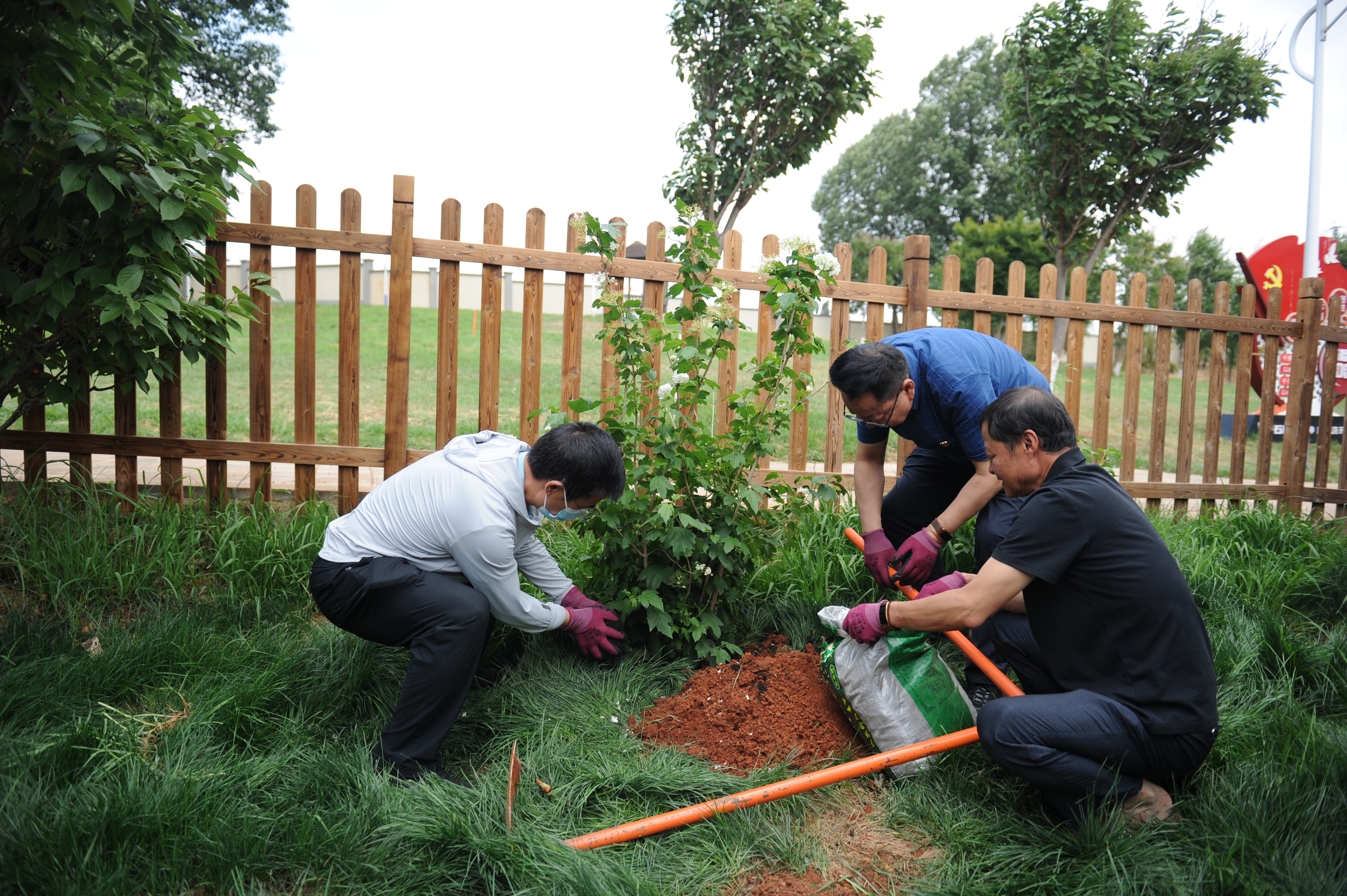 在花园片区,文俊书记等学院领导种下了两棵中华木绣球,期望学院和心理花园未来蓬勃发展。
