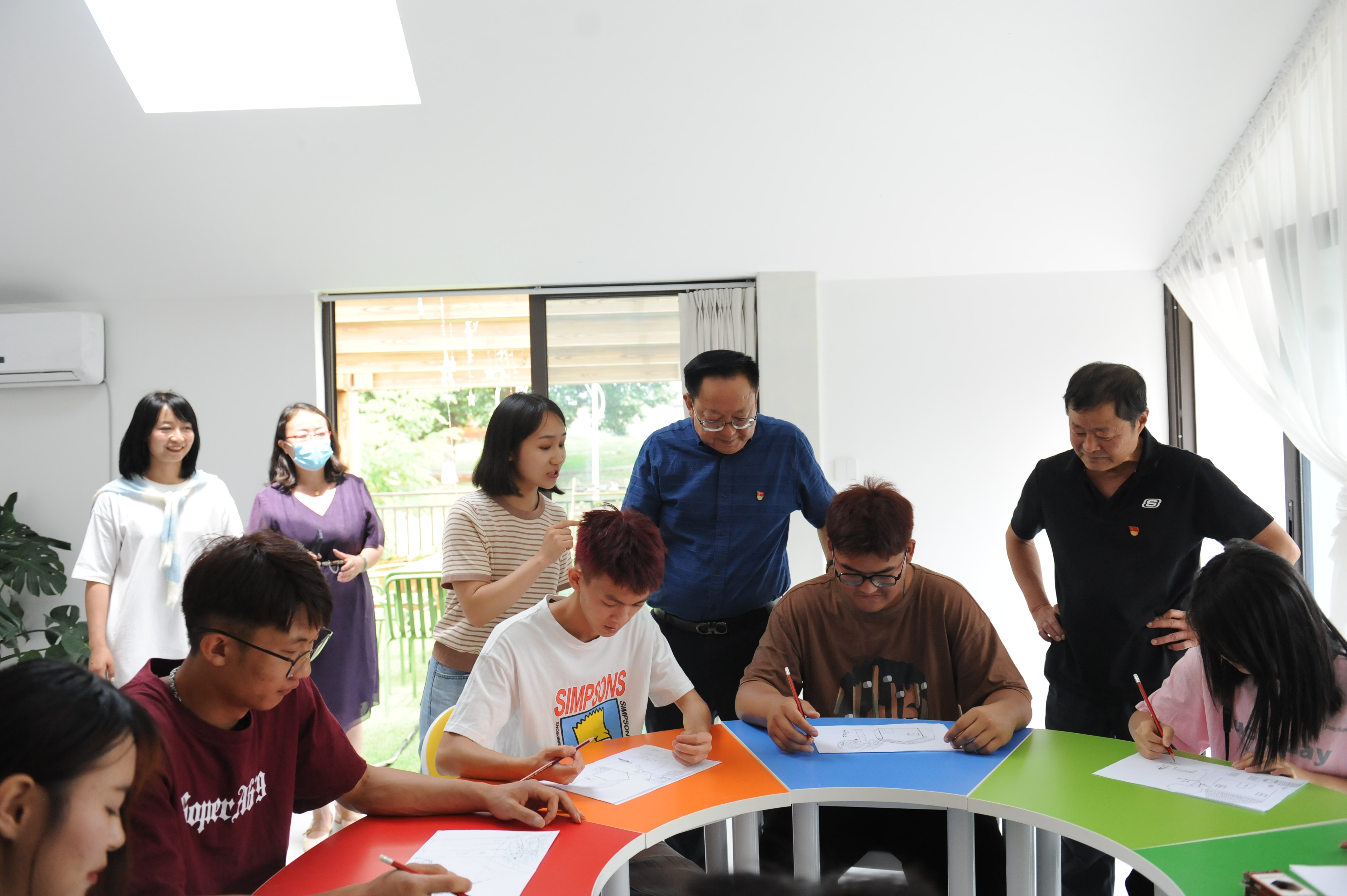 在心理中心王瑾雯老师的介绍和带领下,一行人来到“奇趣间”团体辅导室观看学生进行“房树人”绘画投射测验,心理中心的袁佳佳老师向领导介绍了房树人绘画在心理健康教育中的应用。