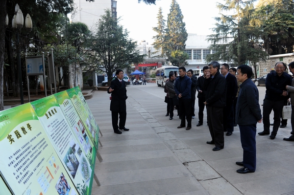 2014年元月8日上午,我院迎来了省委省政府及昆明市有关领导十三人莅临两校区调研学院危房排除及建校选址等事宜。云南省委副秘书长钱恒义、省政府副秘书长普建辉、省发改委副巡视员保卫民、省委高校工委副书记省教育厅副厅长邹平、省国土资源厅总规划师赵乔贵、省农业厅副厅长孙海清、昆明市政府副秘书长市规划局局长尹旭东等十三位领导,学院党委书记崔金赋、院长李永忠、副院长何明东、副院长赵莉、院长助理田应华,以及党院办、基建办、宣传部、教务处、畜牧兽医系、生物工程系、园艺与园林工程系的有关负责人出席调研会。