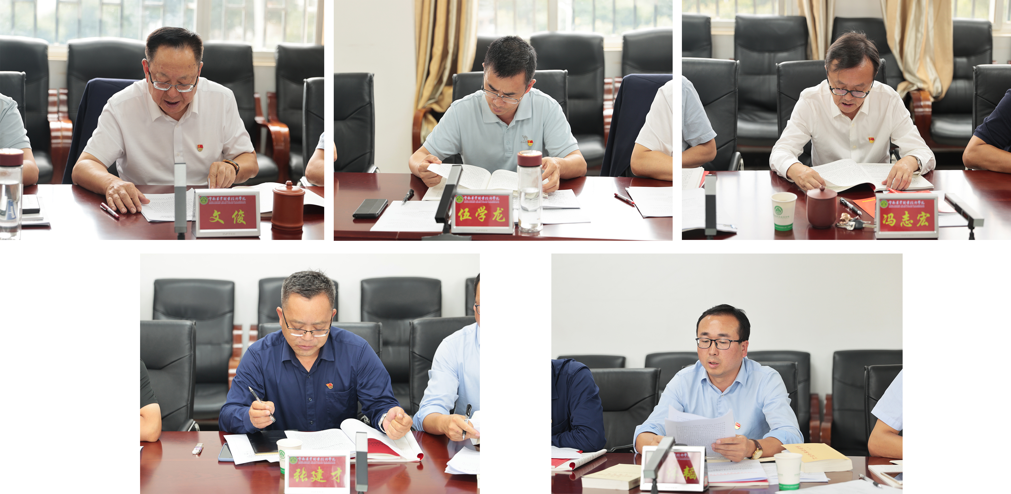 会上,党委书记文俊,党委副书记伍学龙,纪委书记冯志宏,党委委员、马克思主义学院党总支书记张建才,党委委员、组织部部长夏体韬围绕学习主题,结合工作实际,开展交流研讨。